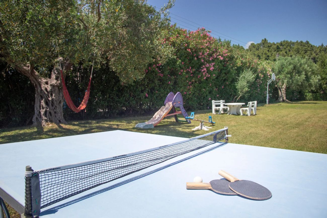 Пясъчно-чакълест плаж на 400 м, чадъри и шезлонги на басейна безплатно, на плажа платено.