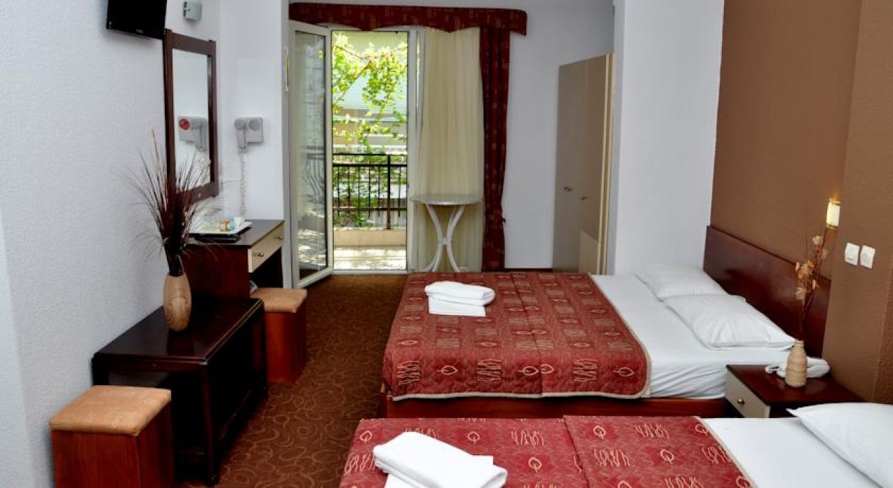 Хотелът разполага с общо 23 стаи. Всички стаи са оборудвани с климатик, сателитна телевизия, телефон, мини-бар и самостоятелен балкон.Ежедневно почистване на стаите и смяна на спалните комплекти на всеки два дена.