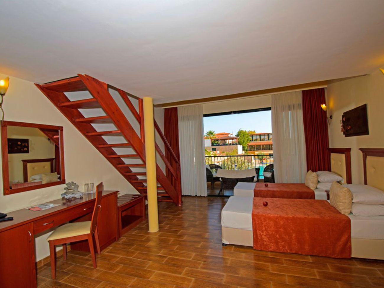 В стаите са на разположение климатик с индивидуален пулт за управление, телефон с пряка връзка, мини хладилник, баня с душ, сешоар, телевизор със сателитна телевизия, двойно легло и разтегателен диван, сейф (срещу заплащане), балкон/тераса.