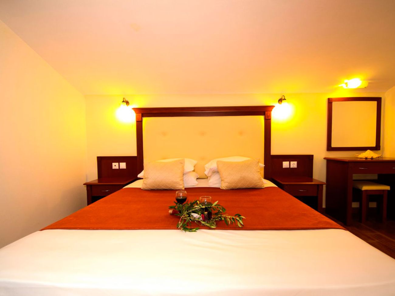 Мезонети Първи етаж (~22-24 кв.м) - всекидневвна с диван, дрешник, двуетажно легло, DVD-плейър, сателитна телевизия. Втори етаж (~12 кв.м) - двойно легло, нощни шкафчета, длешник с огледало, телефон с пряка връзка, сателитна телевизия. Възможно настаняване - до 4-ма възрастни.