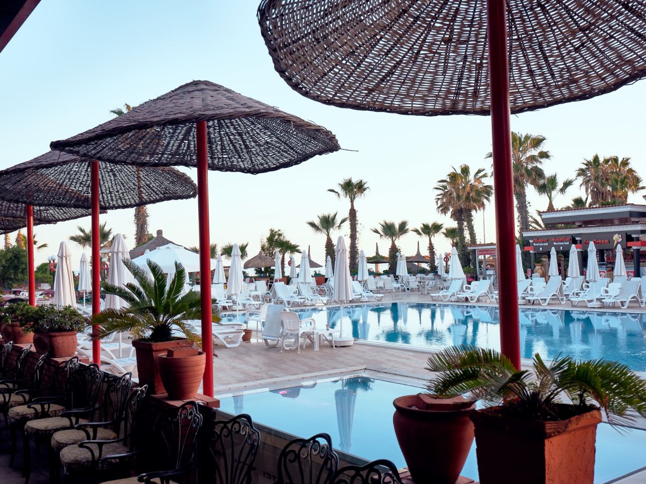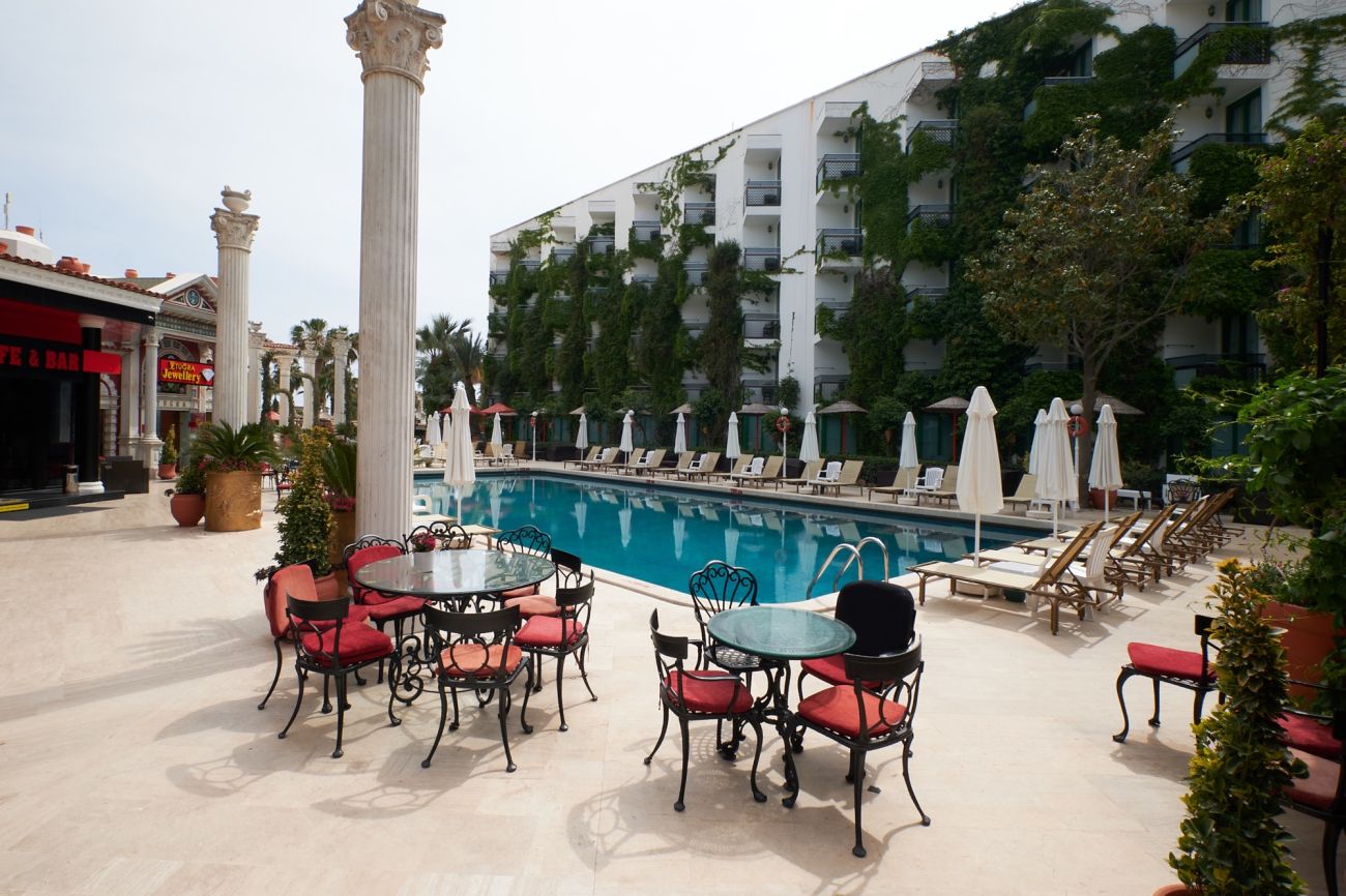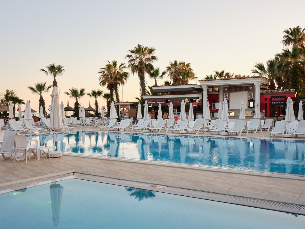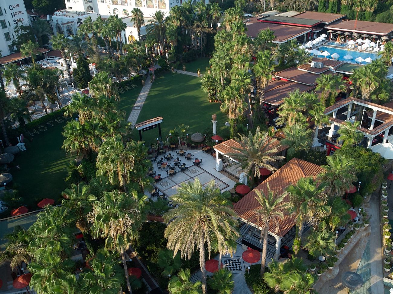 Хотелът е разположен на 9км от летището, на 12км от центъра на Анталия, на брега на морето.