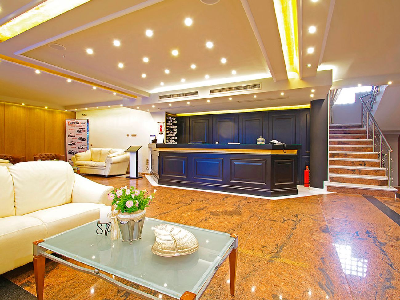 Хотелът се намира в Паралия Катерини, на 85 километра от летище "Македония" и на 70 километра от центъра на град Солун. Хотел е реновиран през 2009 г.