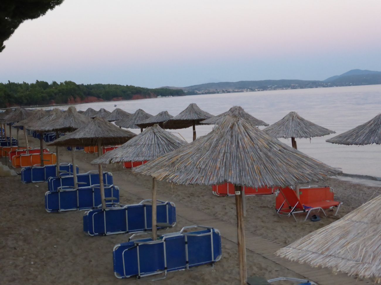 Плажът е пясъчно-чакълест до хотела, шезлонги и чадъри - срещу заплащане.