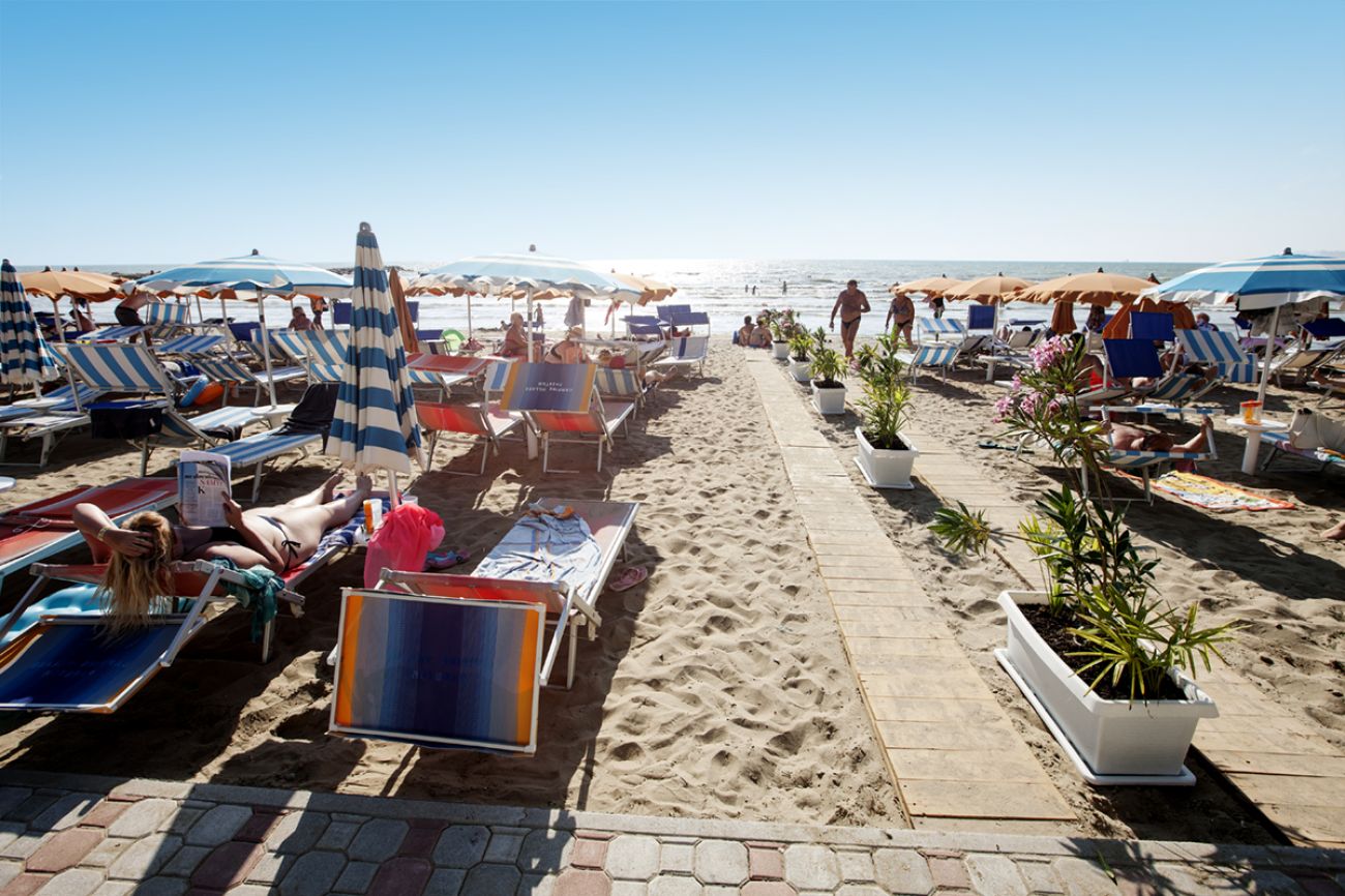 Пясъчен плаж пред хотела с безплатни чадъри и шезлонги.