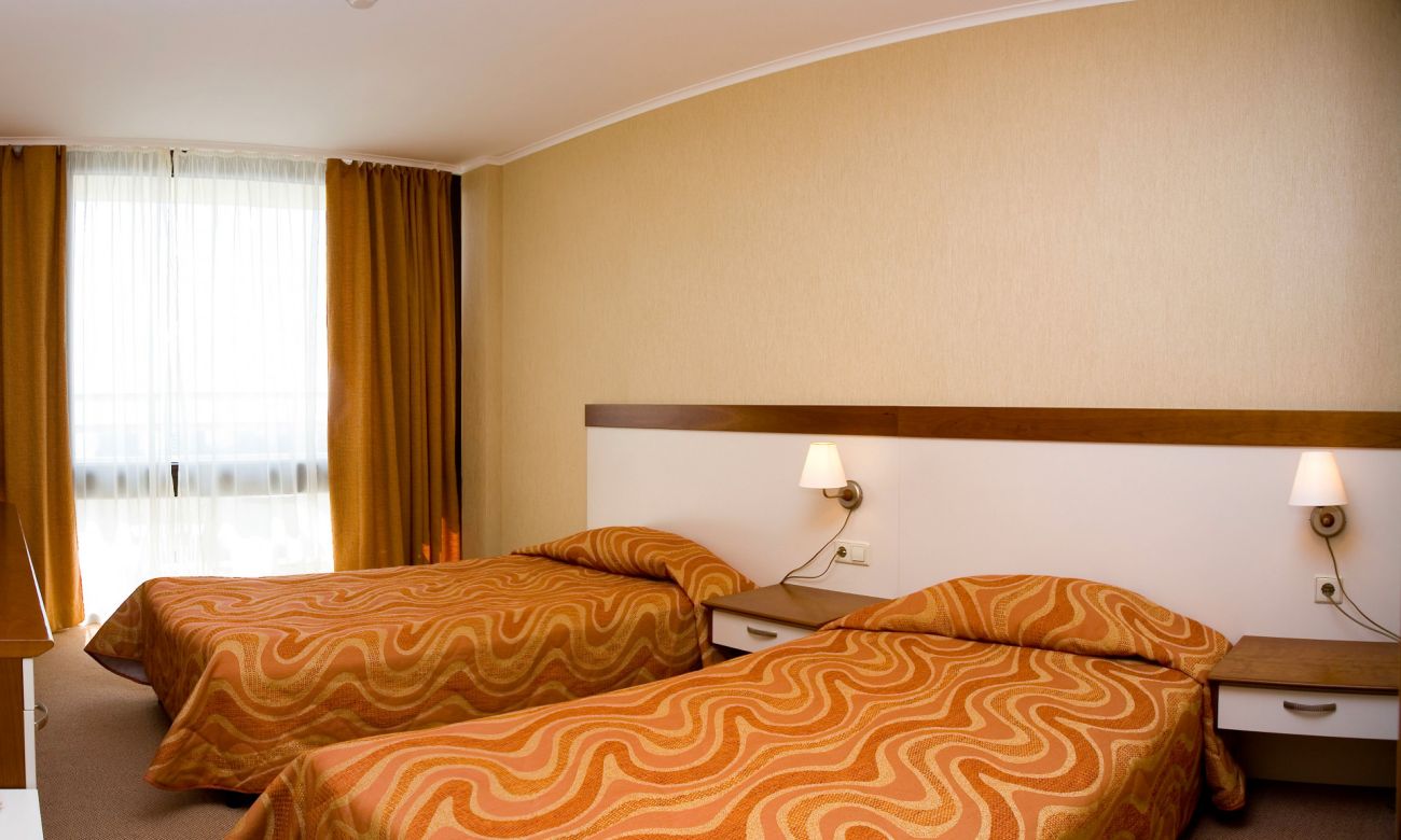 Хотелът разполага със 70 единични стаи, 170 двойни стаи, 12 апартаменти с климатик с 1 спалня + хол, 34 апартаменти с климатик с 2 спални + хол, 2 стаи за инвалиди на 1 етаж. Всички стаи са с баня с вана, телефон, телевизор с кабелна телевизия, минибар, бюро, огледало. Част от стаите са с балкон /79 стаи/, част от тях с климатик /62 стаи с локален климатик, 42 стаи са с общ климатик/. Реновираните стаи са 8, реновираните студия - 2. Настаняване в стаите до 2-ма възрастни с 1 дете.