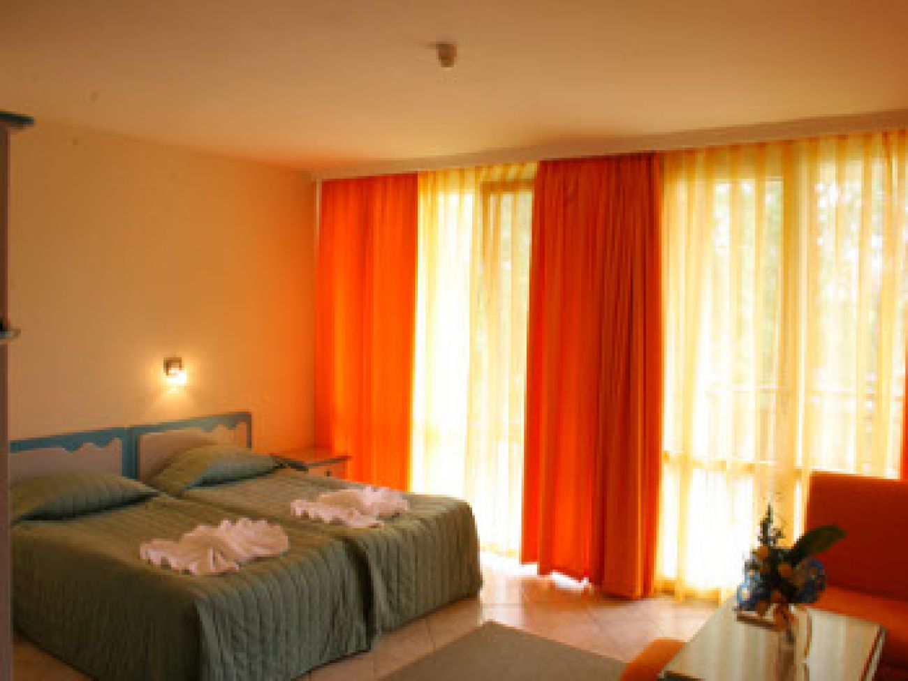 Хотелът разполага със 155 стаи, от които 65 студиа, 38 двойни, 10 единични, 25 апартамента, състоящи се от две помещения – спалня и всекидневна, 5 двуспални апартамента с четири нормални легла и едно допълнително и 12 тройни стаи с едно нормално легло за двама, едно стандартно и едно допълнително. Във всички стаи има хладилник, климатик, две нормални легла и възможност за едно допълнително за възрастен и едно допълнително за дете.