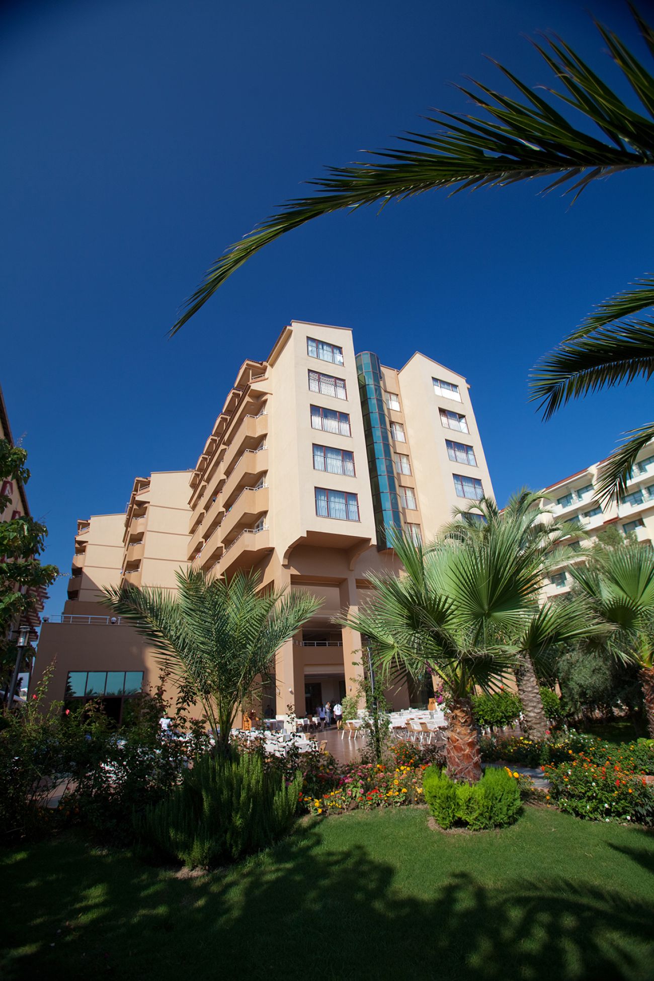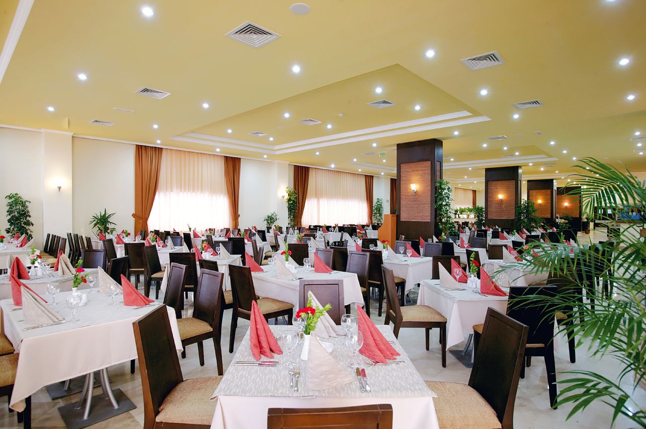 ресторант, 2 бара, открит басейн, закрит басейн, 3 водни пързалки, Фризьор, пералня, магазини, обмен на валута, коли под наем, ТВ-салон, детски басейна, мини клуб, детска площадка, конферентна зала, търговски център. Хотелът е построен през 2005 г., с обща площ 10000 м2. Допълнителна информация: не много голяма територия, но достатъчно големи стаи.