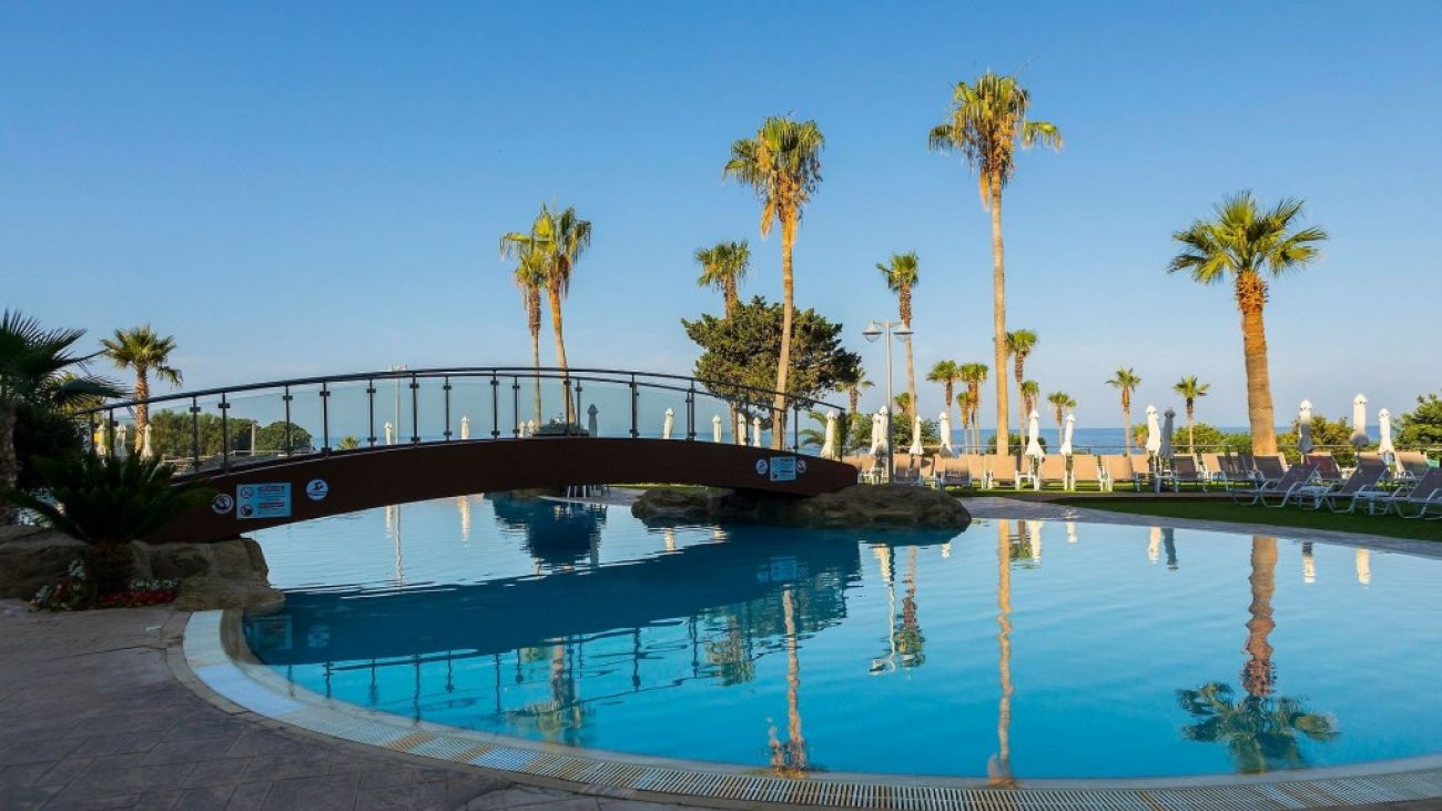 Курортът се намира на брега на морето, в покрайнините на град Пафос. Хотелът разполага със зряла градина от 20 000 кв.м. Комфортните стаи разполагат с балкон или тераса, климатик, телевизор, хладилник, удобства за приготвяне на чай/кафе и самостоятелна баня със сешоар. Ресторантите сервират местна и интернационална кухня и организират тематични вечери. Хотелът предлага открити басейни, аквапарк, плаж, детски басейн, детски клубове, фитнес зала, СПА център, сауна, джакузи, козметични процедури, 24-часова рецепция и безплатен Wi-Fi.