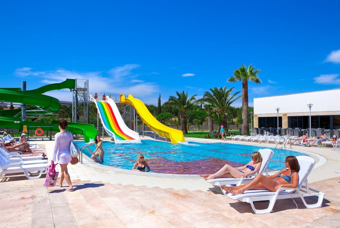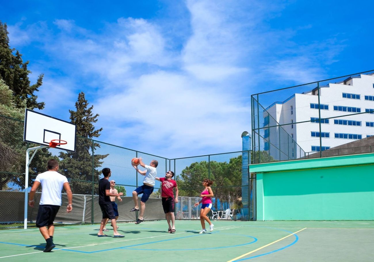 Детска стая за игри, турска баня, сауна, фитнес център, аеробика, плажен волейбол, баскетбол, тенис на маса, тенис на корт, дартс, анимация, аквапарк, дискотека (вход), безжичен интернет.
