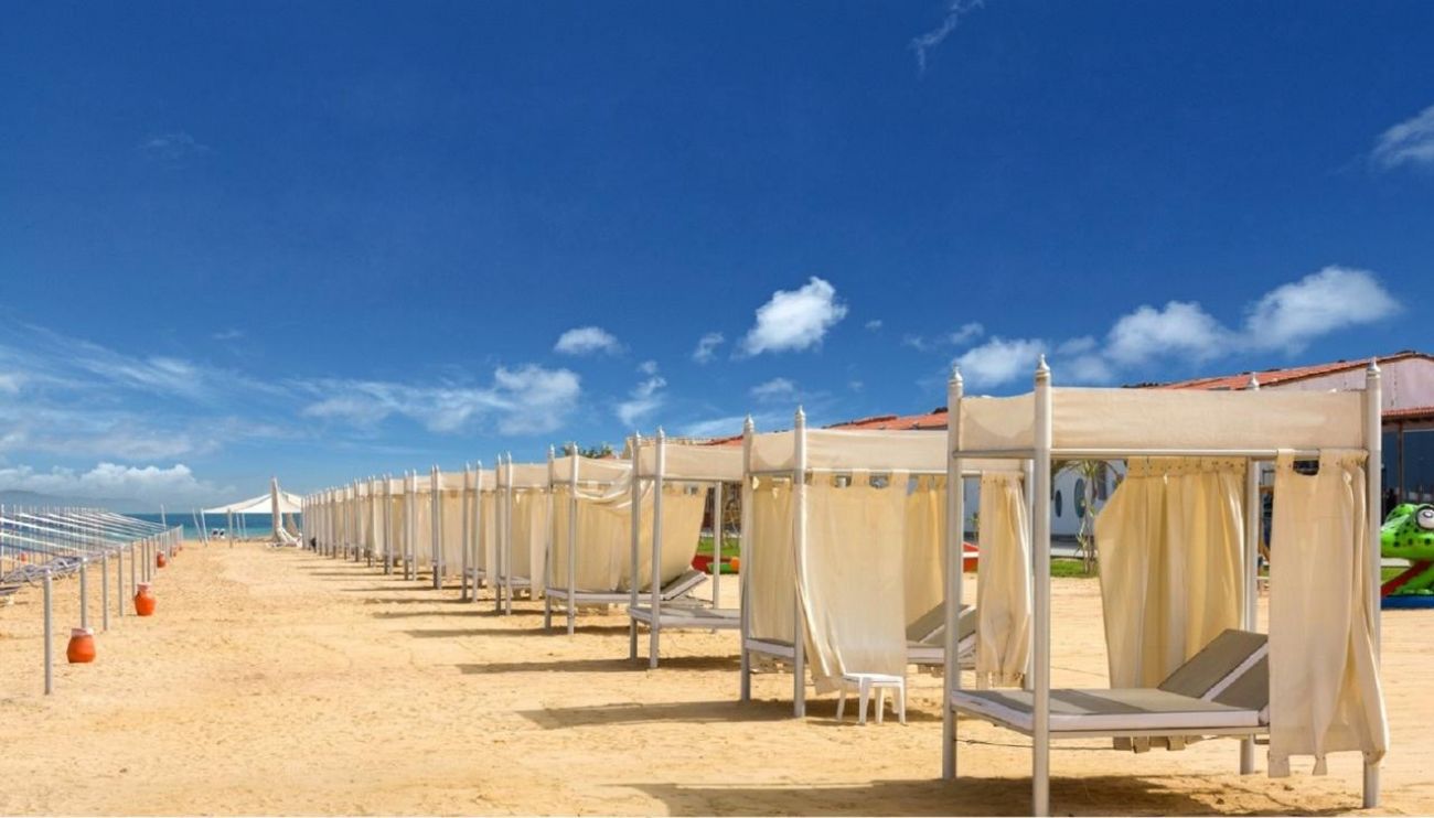 Собствен пясъчен плаж със залив. Чадъри и шезлонги при басейна и на плажа - безплатни. Плажни огради за защита от вятъра. Плажни кърпи – безплатно.