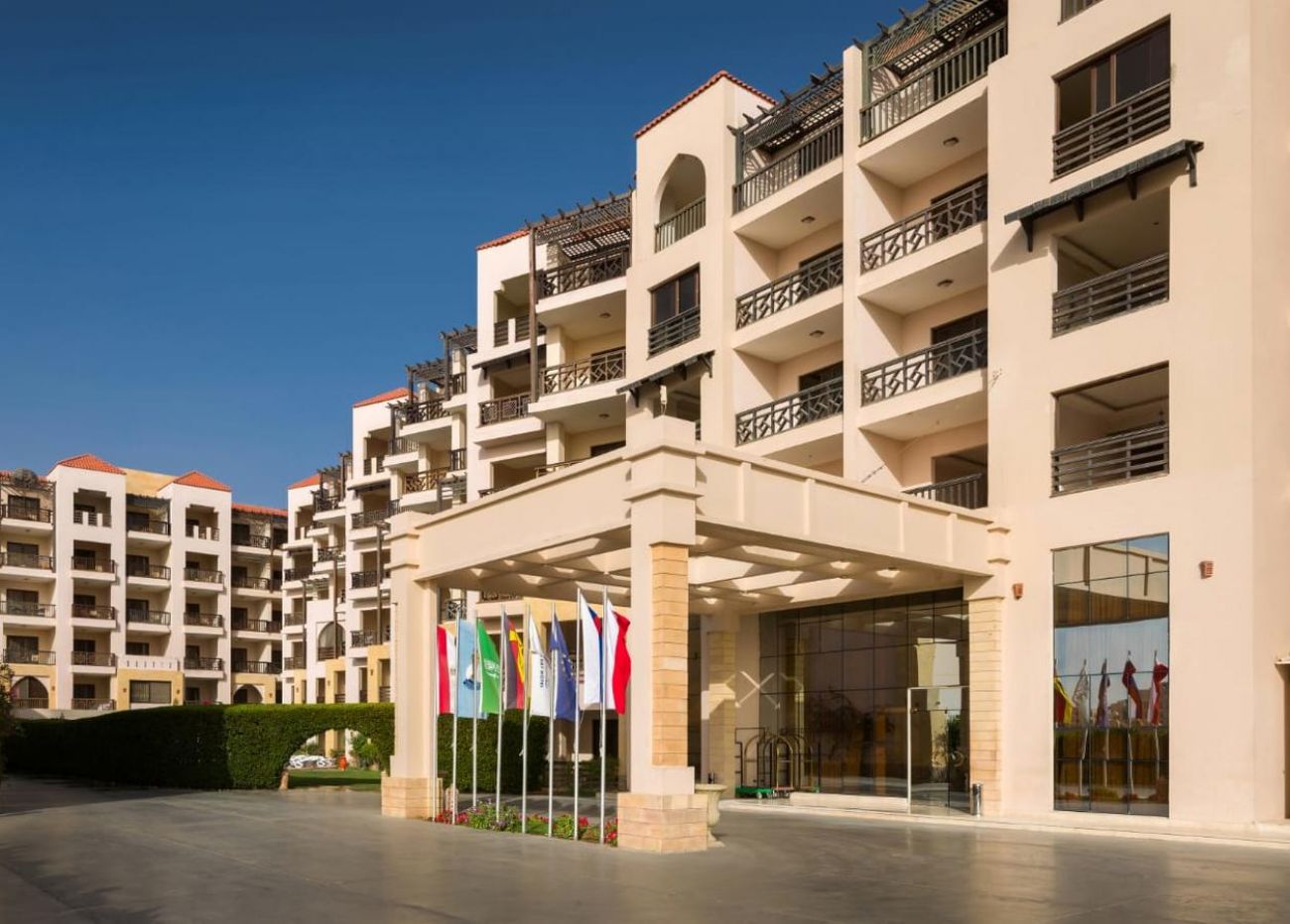 Намира се на 5 км. от летище Хургада, на 8 км. от центъра на Хургада, в района на пешеходната зона Ел Мамша, на брега на морето. Хотелът е открит през 2017г.