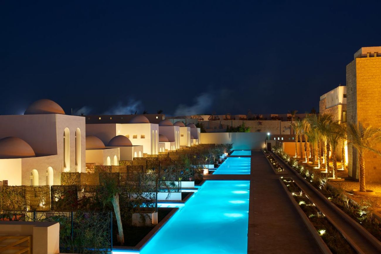Намира се на 22.5 км. от летище Хургада, на 36 км. центъра на Хургада, в района на Макади бей, на брега на морето. Хотелът е открит през 1997 година.