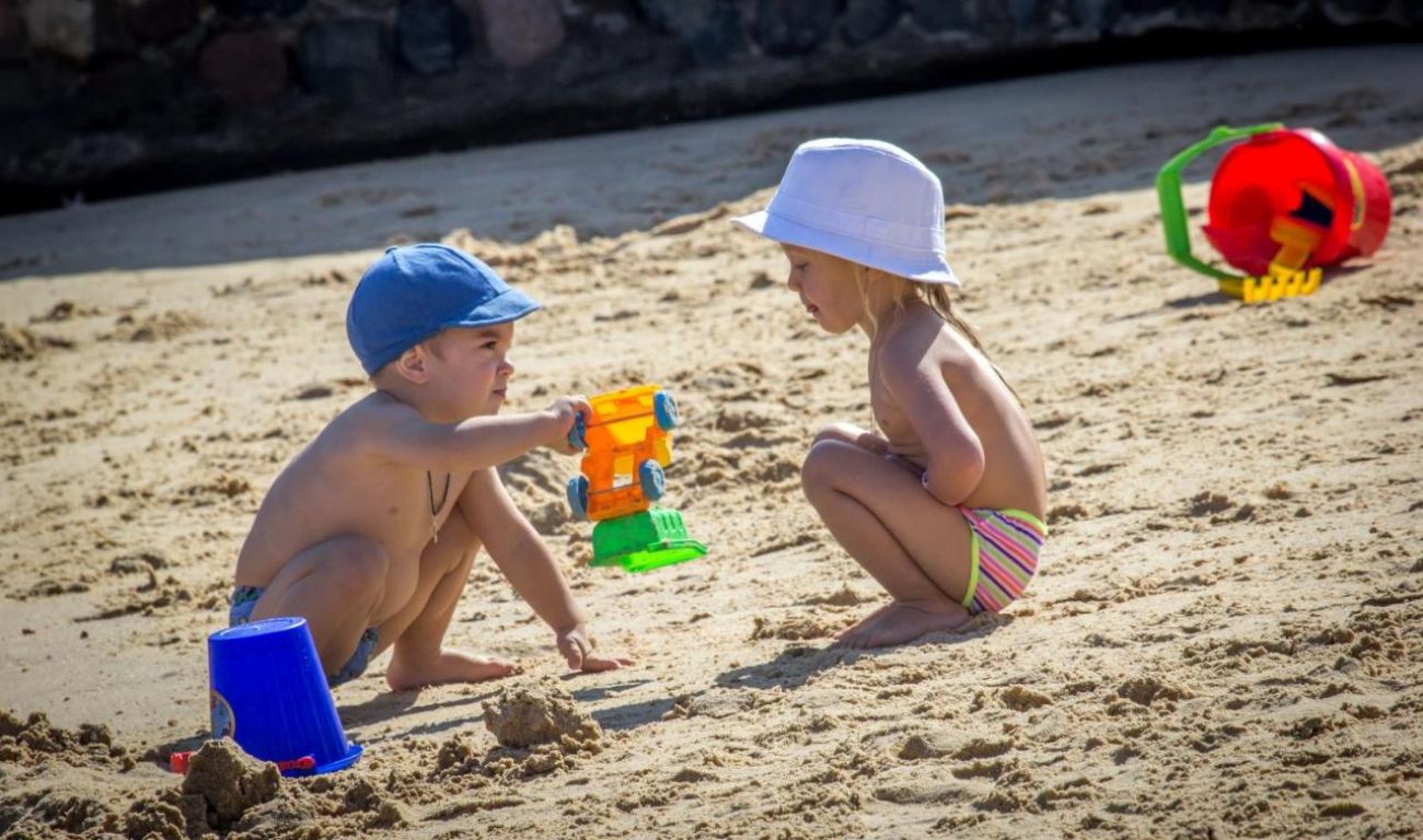 Собствен, пясъчен и лагуна. Чадъри, шезлонги и матраци на плажа и при басейна - безплатно. Плажни кърпи – срещу депозит.