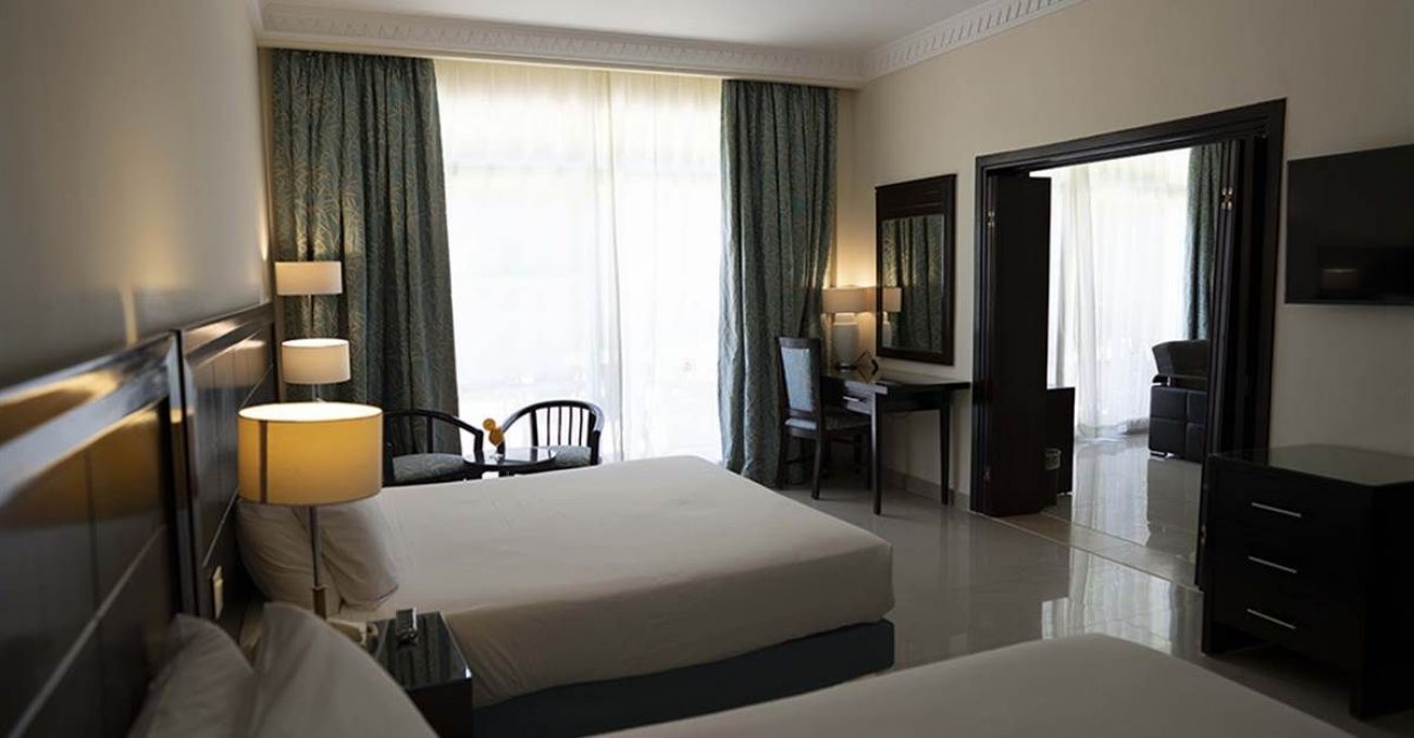 - Suite Room: 57 кв.м, една стая с двойни и единични легла, хол с диван, баня.
