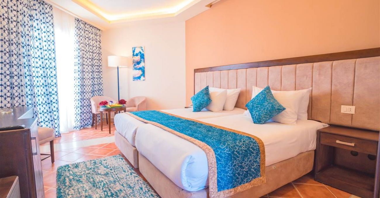 - Standard pool view room: 28 кв.м, една стая стая с двойно легло (размер 180 см х 200 см) или две единични легла (размер 120 см х 200 см), зона за отдих, баня с душ, балкон или тераса, гледка към басейна. Максимално настаняване в стаята: 3. В стаята се осигурява едно допълнително легло, доколкото е възможно, размер 100 см x 200 см.