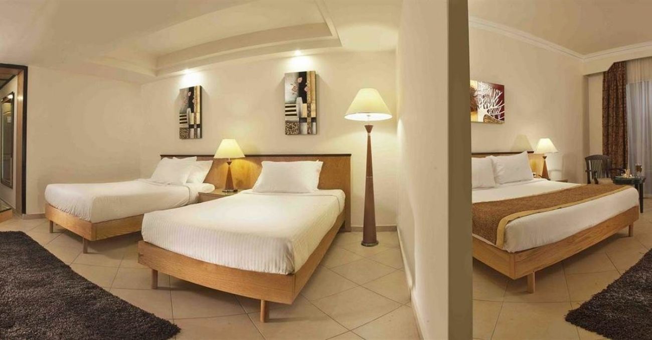 - Grand family room: 75 кв.м, стая с две спални, обособени с врата, спалня с двойно легло (размер 160 см х 200 см) и спалня с две единични легла (размер 120 см х 200 см), хол с диван, баня, балкон. Максимално настаняване в стаята: 4+1 или 3+2.