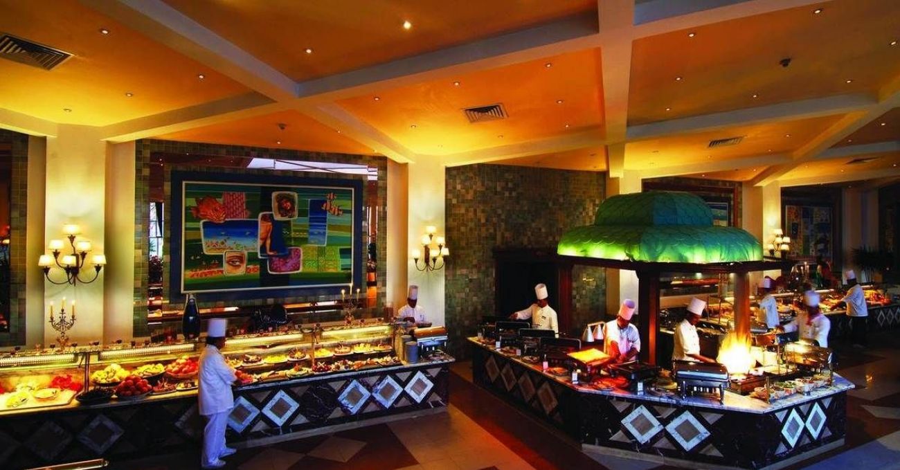 Външен басейн (отопляем през зимата), частично закрито джакузи с морска вода (само за възрастни), основен ресторант Sinai, ala carte ресторант Taj Mahal (индийска кухня), ala carte ресторант Egyptian (египетска кухня), ala carte ресторант Bella Vista (италианска кухня), ala carte ресторант Oasis (морска кухня), лоби бар Panorama & Piano Lounge, кафе Khan El Khalili, диско-бар Now & Zen, бар Palm Beach, бар на басейн Oasis, бар The Niche, бар Billiard, фитнес зала, амфитеатър, музика на живо, аеробика, водна аеробика, уроци по танци, анимация, тенис корт (осветление - срещу заплащане), тенис на маса, бочия, дартс, билярд, плажен волейбол, водни дейности (срещу заплащане), снорклинг, дайвинг (срещу заплащане), турска баня, сауна, джакузи, масаж (срещу заплащане), салон за красота (срещу заплащане), Wi-Fi на място (безплатно), пералня (срещу заплащане), обмяна на валута, сейф на рецепция, паркинг, лекар на повикване (срещу заплащане), 3 конферентни зали (обща площ 408 кв.м.).