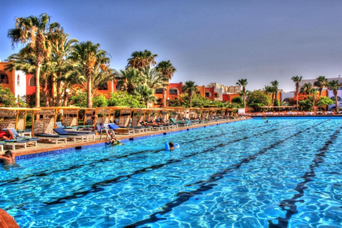 Намира се на 8 км. от летище Хургада, на 3 км. от центъра на Хургада, на брега на морето.