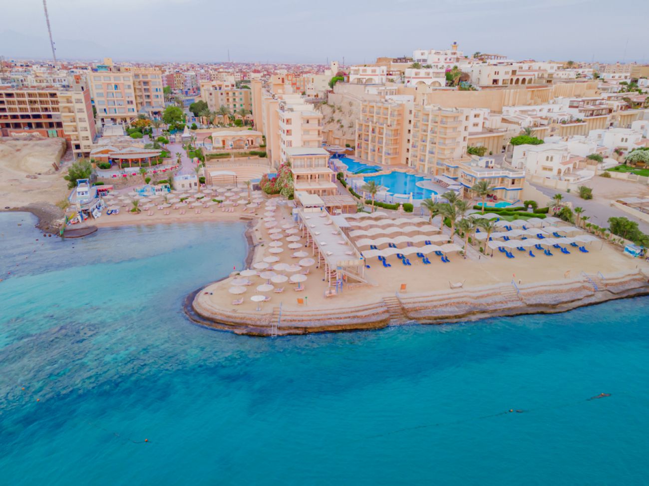 Намира се на брега на морето, 3 км. от центъра на Хургада и на 8 км. от летище Хургада.
