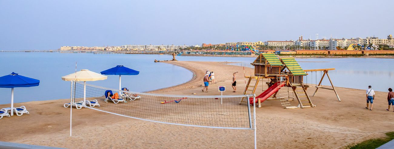 Намира се на 20 км. от летище Хургада, на 15 км. от центъра на Хургада, на брега на морето.