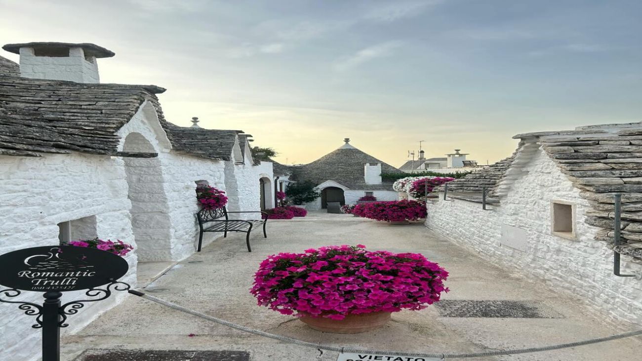 Първата спирка е Алберобело - визитната картичка на Пулия и истинска приказка, пренесена в реалността. Градът очарова с уникалните си трули - малки бели къщички с коносовидни каменни покриви, изградени без спойка - архитектурна хитрост от Средновековието, възникнала като своеобразна „данъчна измама“, позволяваща сградите да бъдат бързо разрушавани при нужда. Днес трулите са под закрилата на ЮНЕСКО и превръщат града в културен и архитектурен феномен.