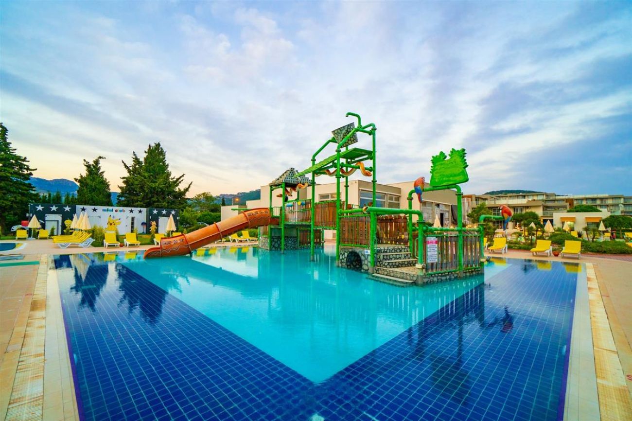 Детски басейн, водни пързалки, детска площадка, мини клуб (4-12 г.), мини диско, детско столче.