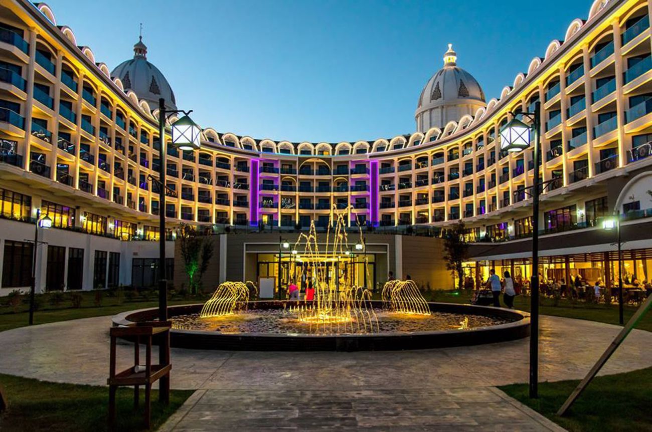 Хотелът е построен през 2016 г., с обща площ 45 000 м2. и разполага с основен ресторант с диетично меню, 5 а-ла-карт ресторанта - рибен (01.06 - 15.10), турски, италиански, мексикански, ресторант с източна кухня - с предварителна резервация, 1 път посещение на един от ресторантите е безплатно; 7 бара, 4 открити басейна (полуолимпийски с подгряване през зимния период), закрит басей (с подгряване, работи само през зимния период), 5 водни пързалки, интернет Wi-Fi (на цялата територия на хотела, безплатно), SPA-център, лекарски кабинет, фризьорски салон, магазини, пералня, химическо чистене, Grand Hall конферентна зала (960 м2 / височина 5.50 м; 3 вида разположения на залата: театрално за 850 човека, стандартно - 750 човека, банкетно - 650 човека).