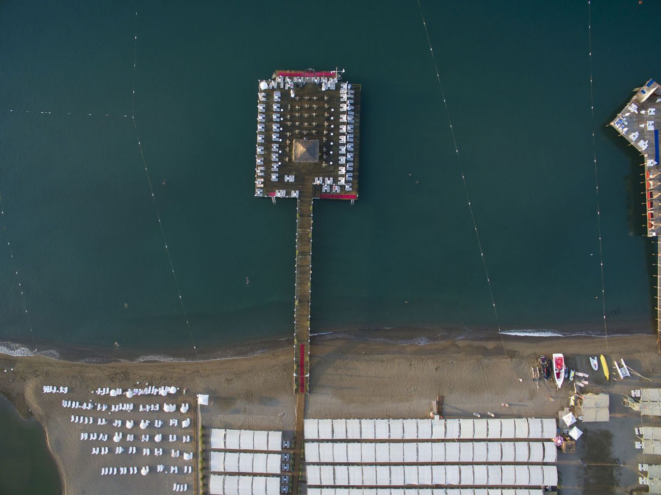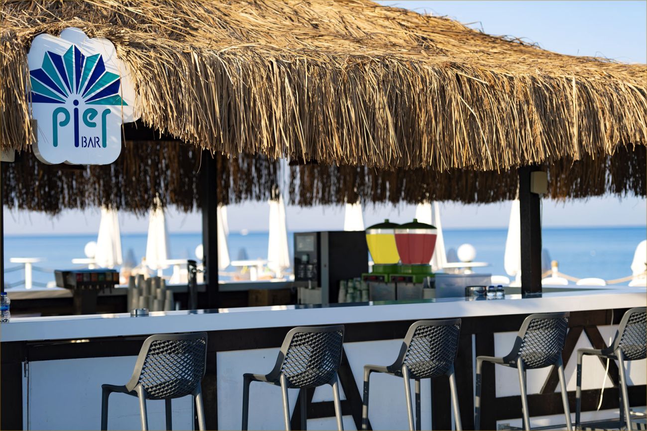 Собствен: пясък, пирс. Бар на плажа: безплатно. При басейна и на плажа: чадъри, шезлонги (меки) – безплатно. Плажни кърпи: безплатно.