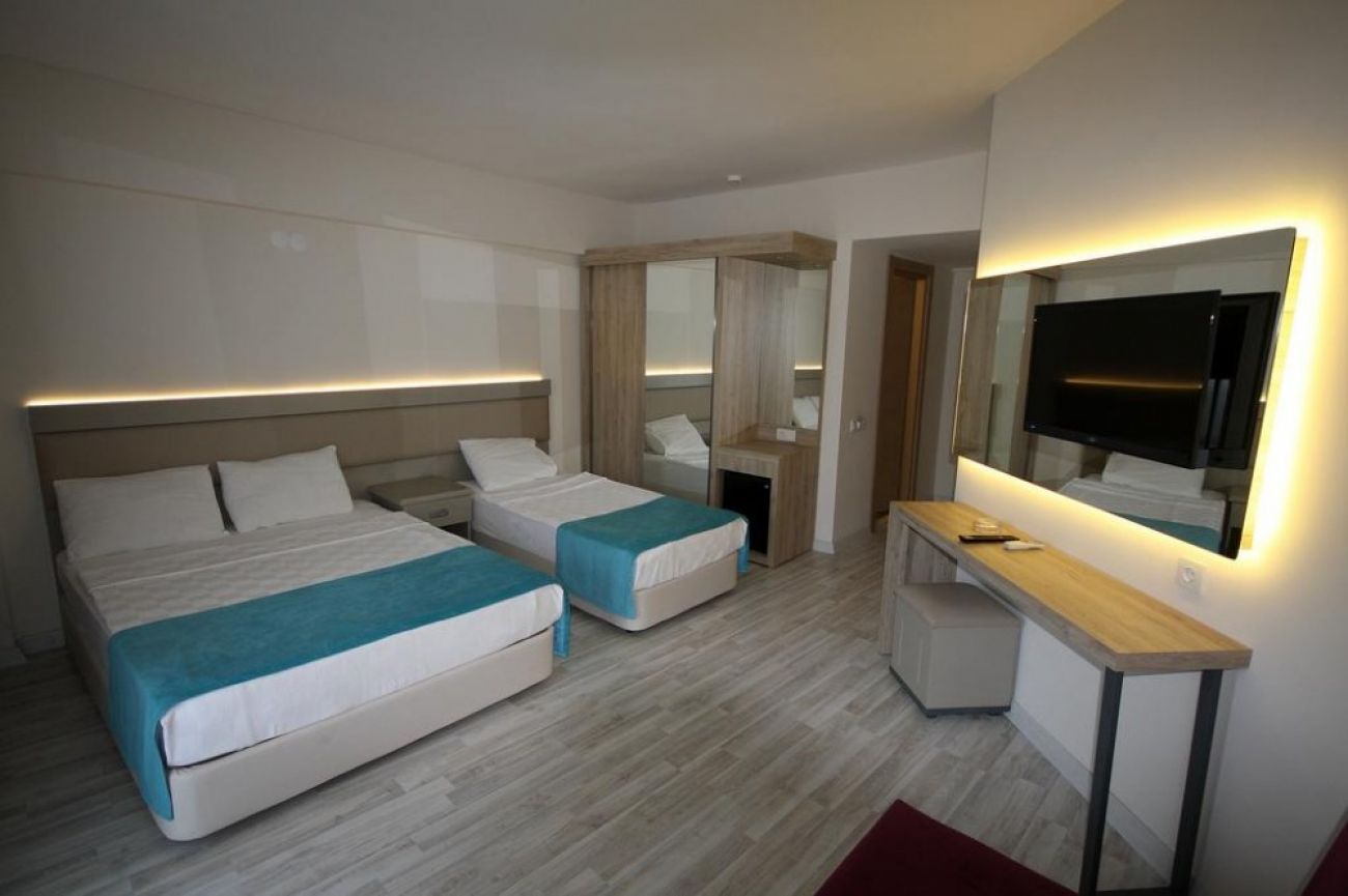 Хотелът разполага общо със 150 стаи.Всички стаи са оборудвани с климатик, телевизор, телефон, баня с душ, сешоар, мини бар, сейф, интернет, балкон. Почистване на стаите – всеки ден, смяна на спалното бельо и кърпите – 2 пъти в седмицата. За децата – Детски басейн. Безплатни услуги – Фитнес, тенис на маса, дартс, табла. Платени услуги – Масаж, сауна, турска баня, салон за красота, пералня, химическо чистене, лекар, игрална зала. Плаж: Градски, пясъчен – чадъри и шезлонги на плажа – срещу заплащане, а при басейна – безплатно.