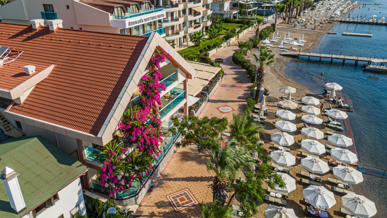 Намира се на 135 км. от летище Милас, 100 км. от летище Даламан, на 5 км от центъра на Мармарис, на брега на морето. Последно реновиран през 2006 г.