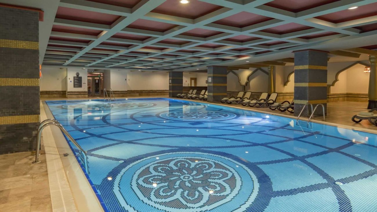 Спа център с турска баня, парна баня, сауна, масажи, закрит басейн и фитнес зала.