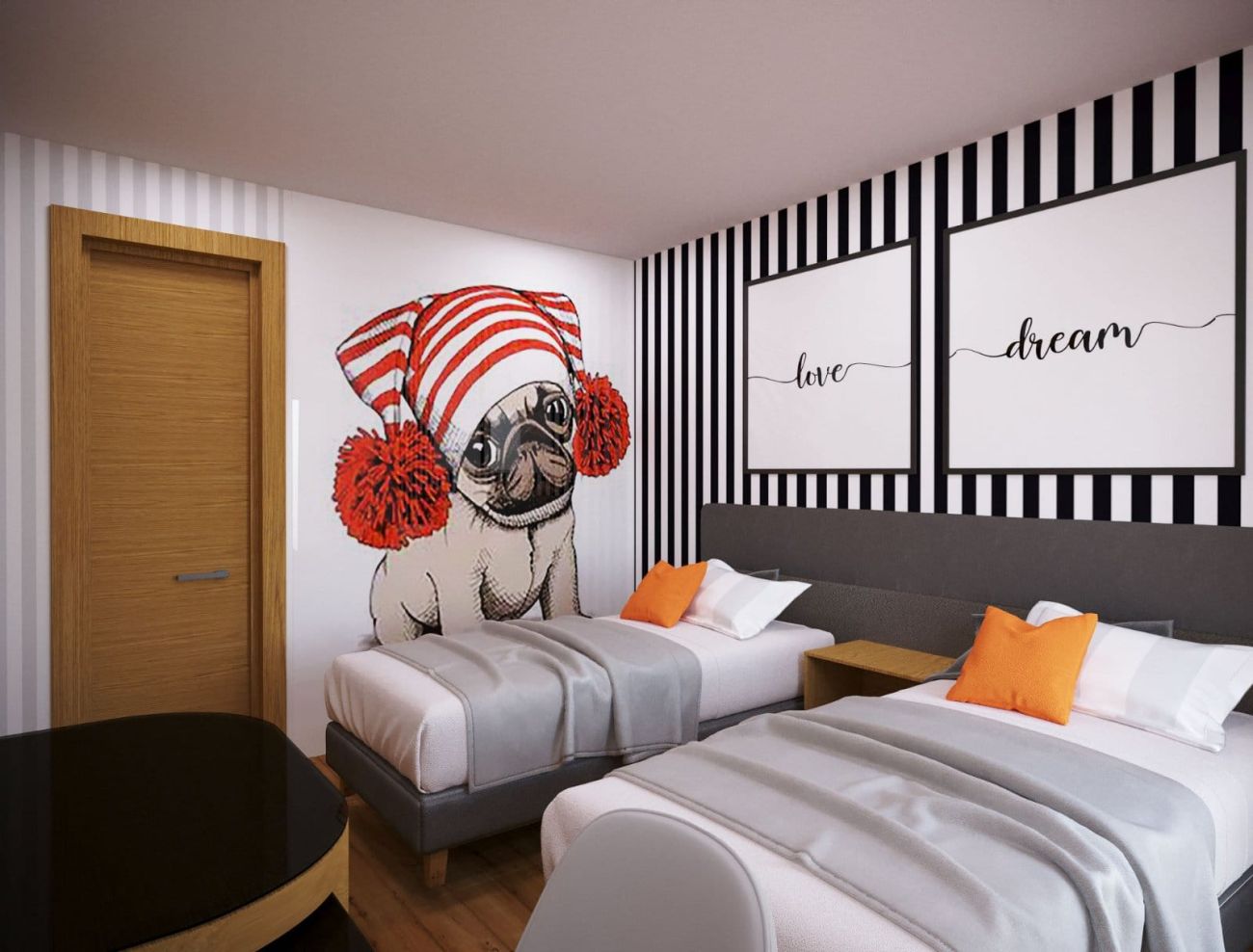 Стаи Aqua Building: 105 Aqua Room (изглед градина или басейн, 27 м2), 17 Aqua Family Room (2 спални, изглед градина или басейн - 45 м2).