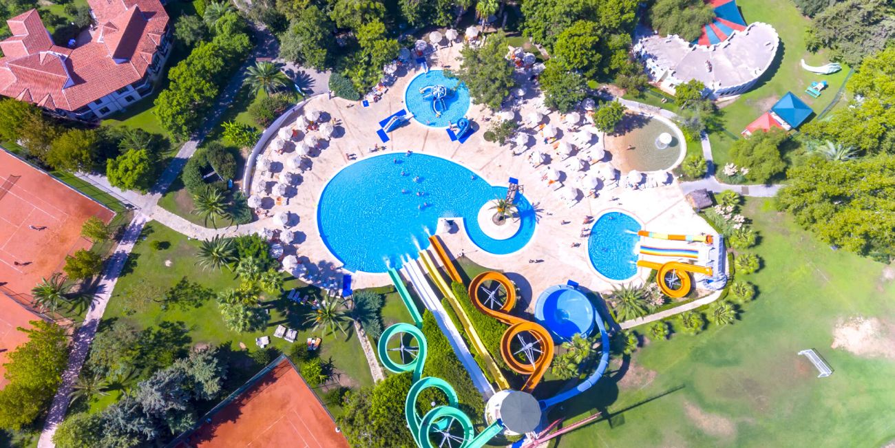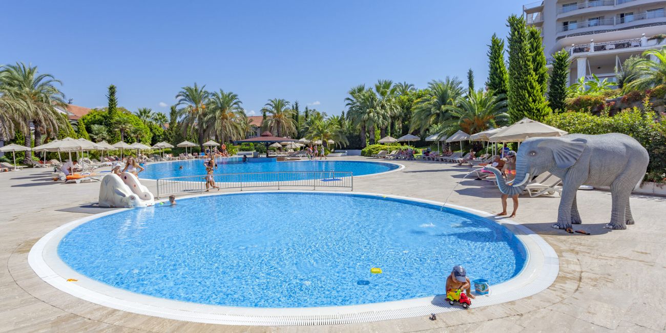 Хотелът разполага с основен ресторант, 12 а-ла-карт ресторанта, 9 бара, 5 басейна, 3 вътрешни басейна, аквапарк с 11 пързалки, дискотека, СПА център, турска баня, сауна (био, руска, класическа), спортен център (футбол, тенис, голф, езда), конферентна зала, амфитеатър, анимация, WI-FI.