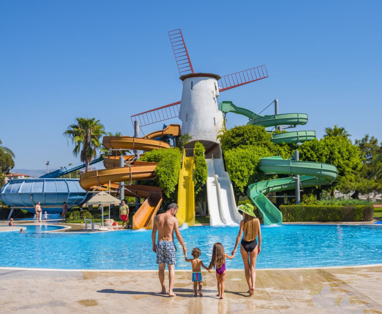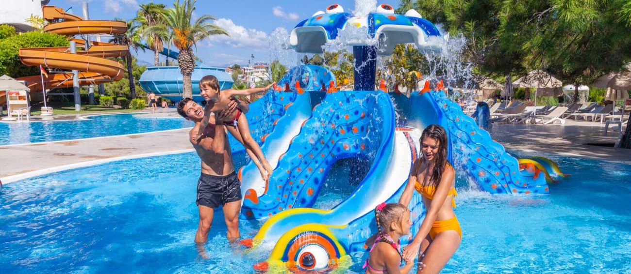 Детски басейн, 6 детски пързалки, анимация, мини клуб (4-12 г.), мини диско, тийн клуб (13-16 г.).