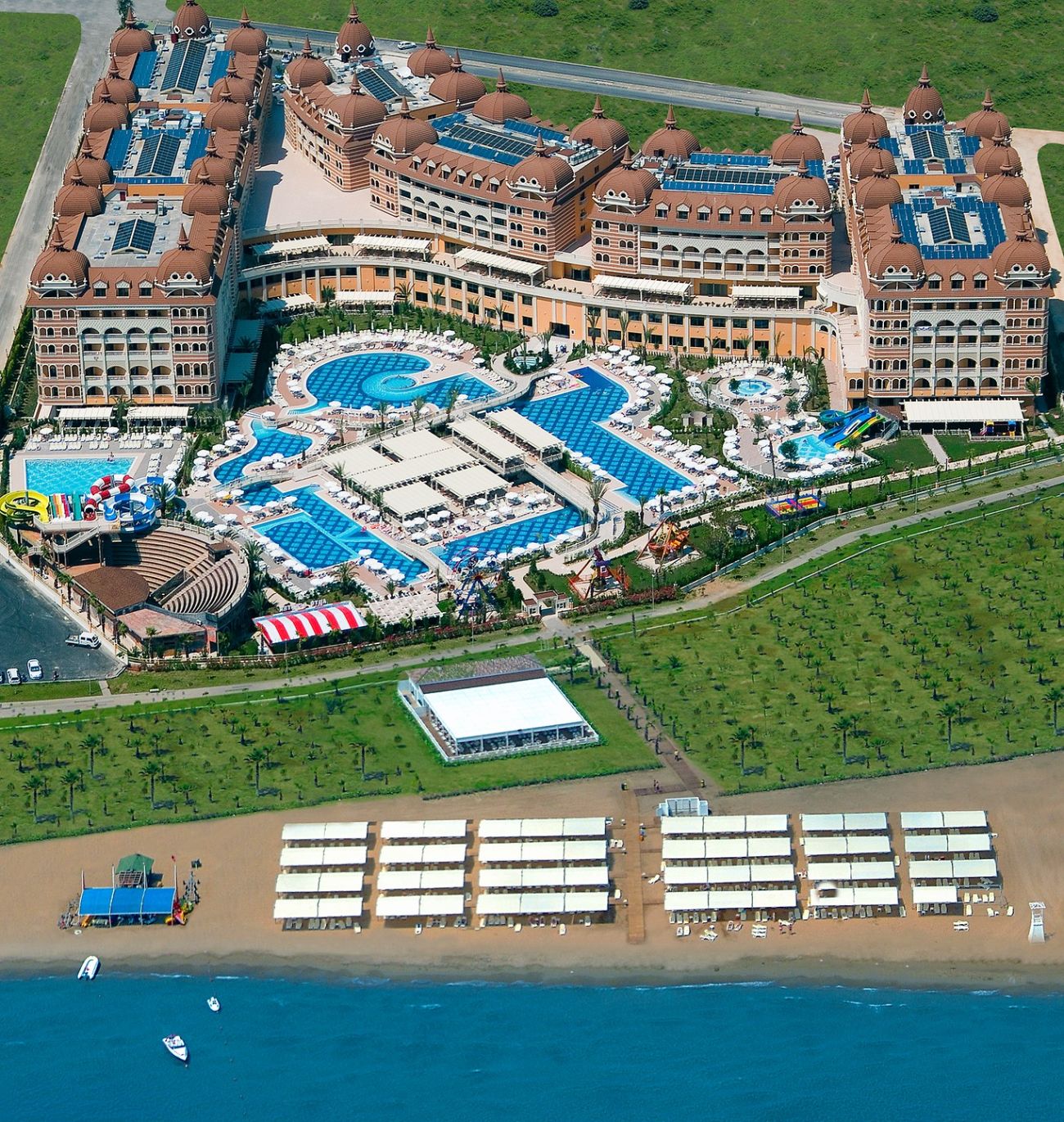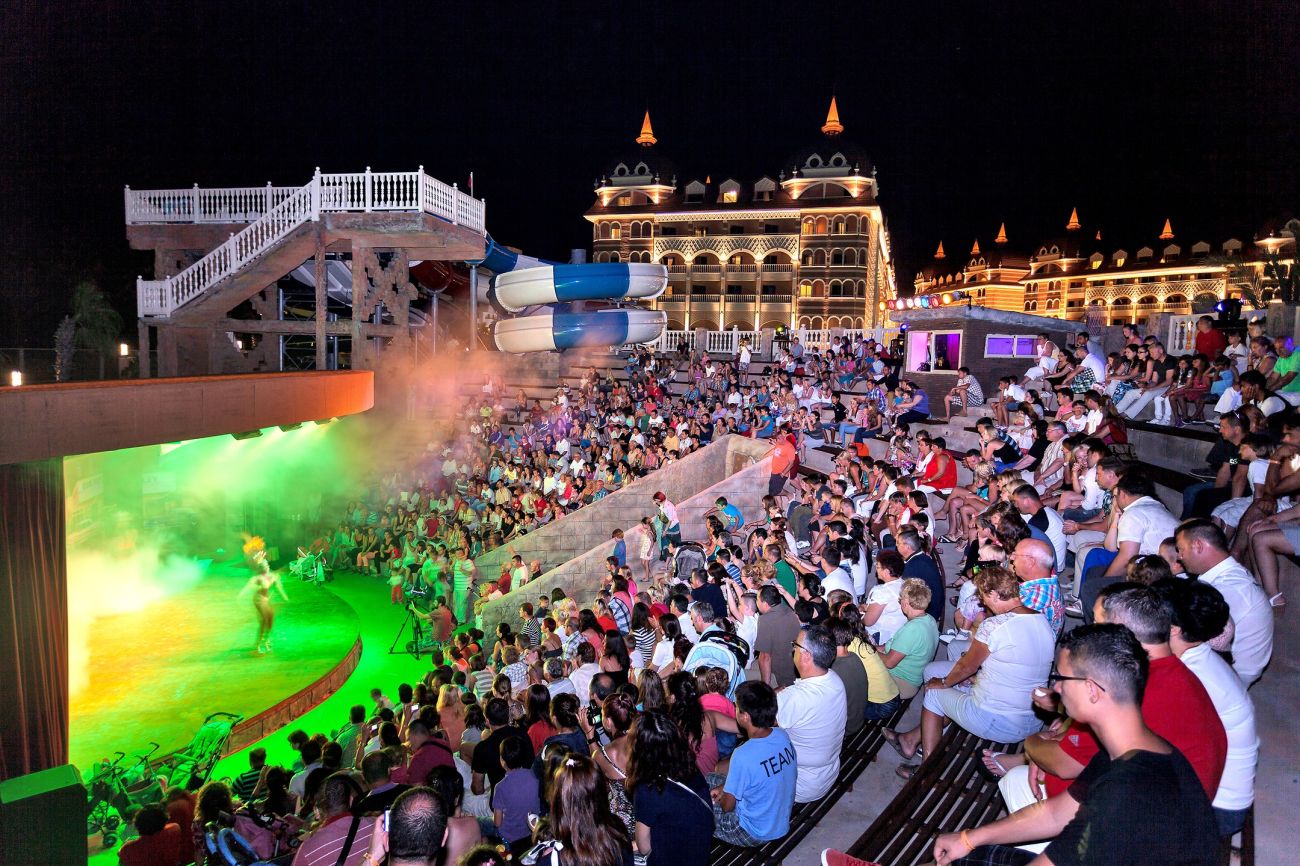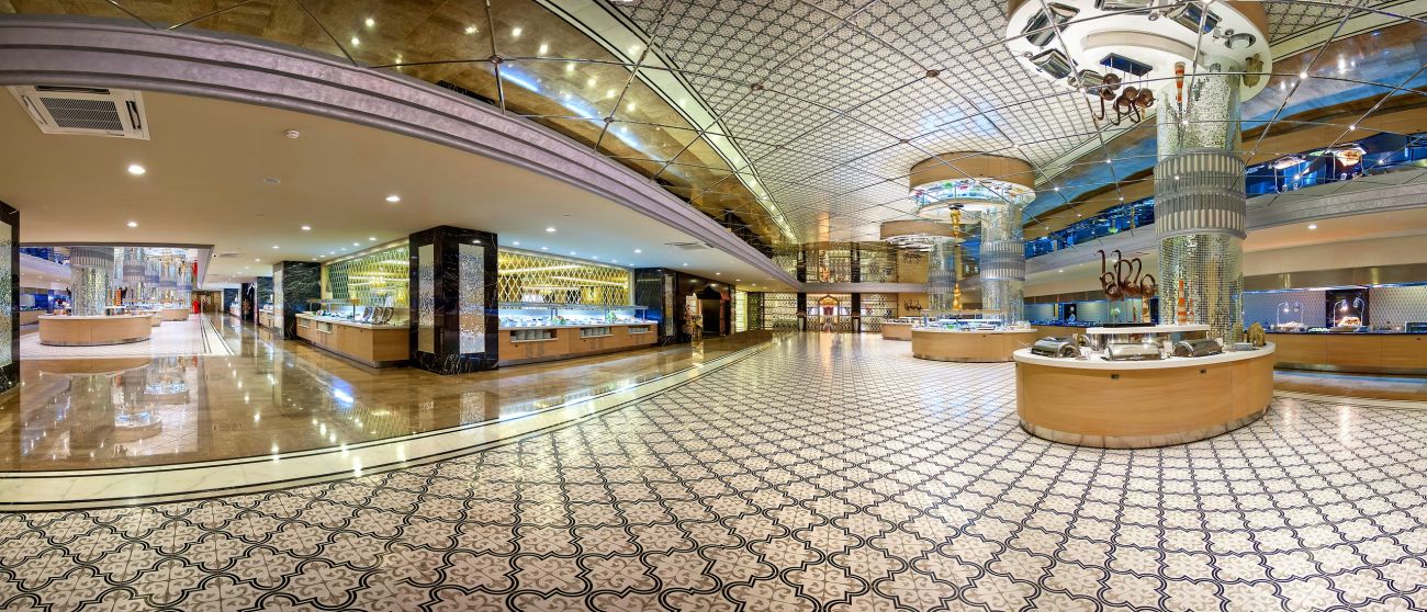 Основен ресторант, диетично меню, 5 ресторанта a la carte (турски, далекоизточен, италиански, рибен, мексикански - с предварително записване, за едноседмичен престой посещение на един от ресторантите 1 път- безплатно), 8 бара, открит басейн, закрит басейн, 6 водни пързалки, лекарски кабинет, SPA център, фризьорски салон, магазини, пералня, химическо чистене.