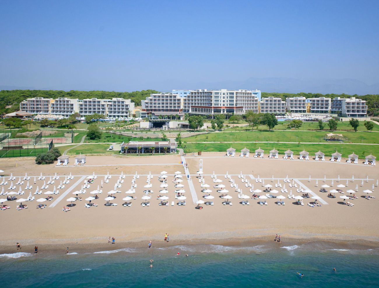 Хотелът разполага с основен ресторант, 6 а-ла-карт ресторанта (Ocean A’la Carte - морски,, Tarçın-френски, Safran - османски, Olive -италиански, Aqua Grillс - текхаус. Посещение на ресторантите съгласно концепцията на хотела.), 6 бара, 7 открити и 1 закрит басейн, СПА център, открито и закрито кино, THEA’S COFFEE SHOP кафетерия, Başka Ol сладкарница, конферентна зала, паркинг.