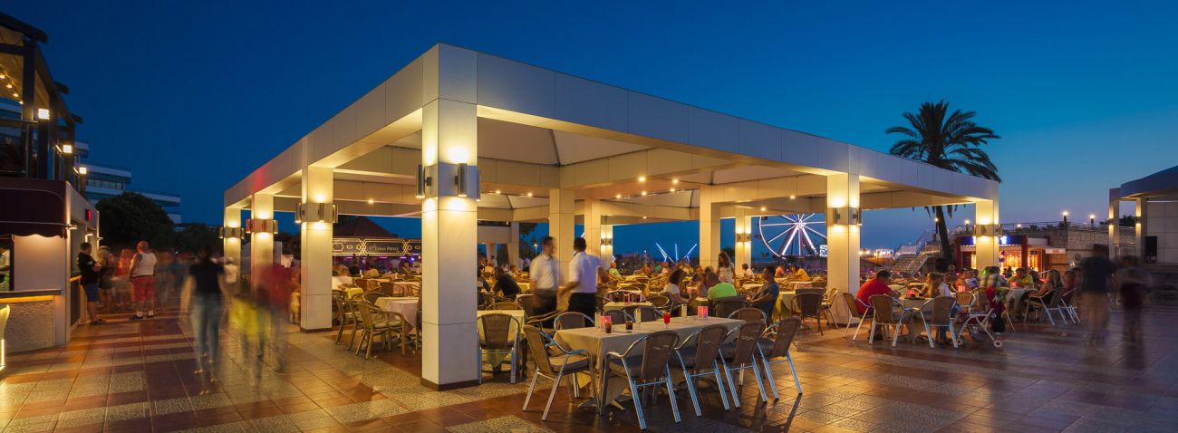 Хотелът разполага с 468 стандартни стаи, 143 фамилни стаи, 58 вили, основен ресторант, 3 а- ла- карт ресторанта, 10 бара, откри и закрит басейн, детски басейн, водни пързалки, луна парк, детски бюфет, мини клуб, анимация.