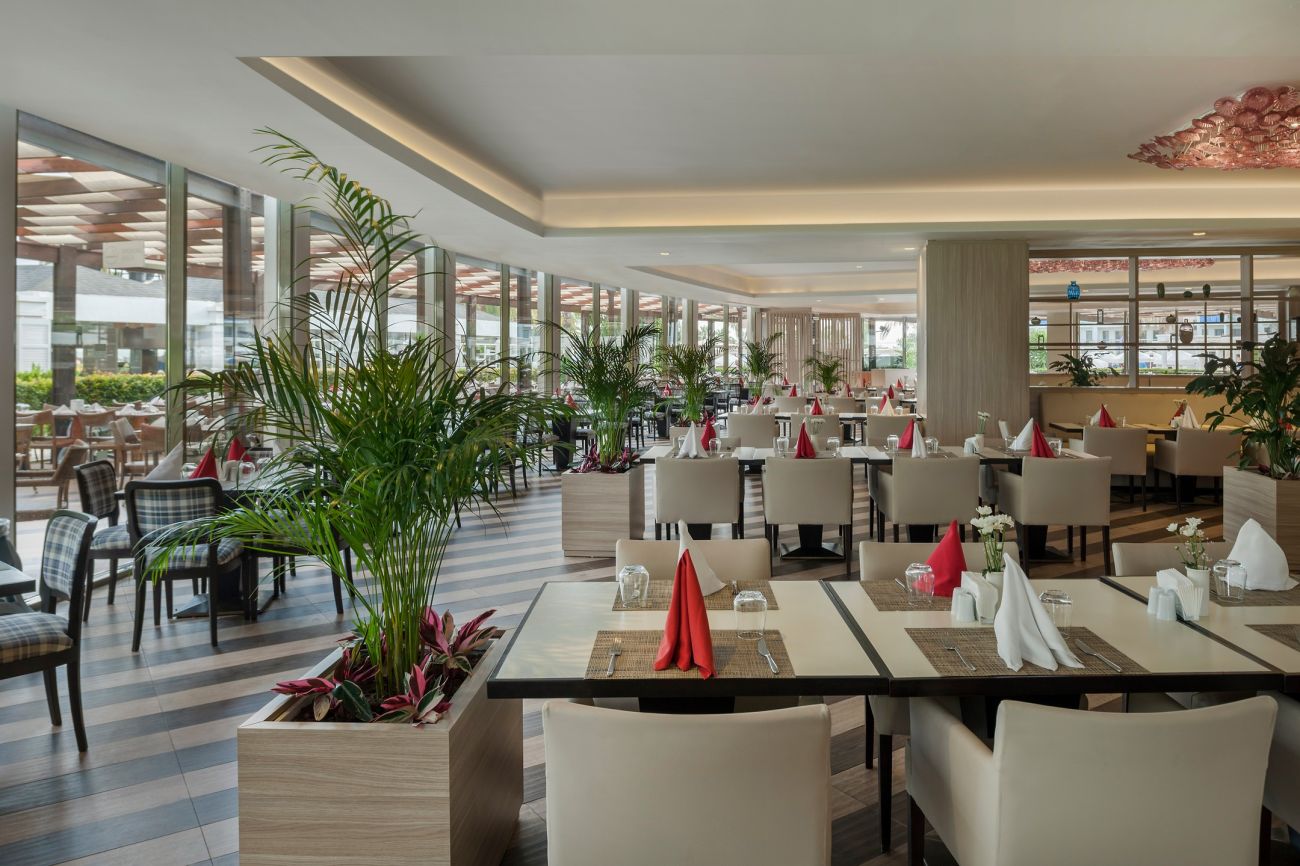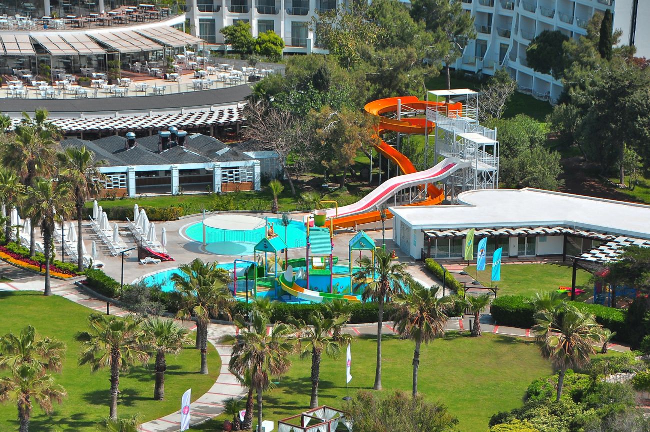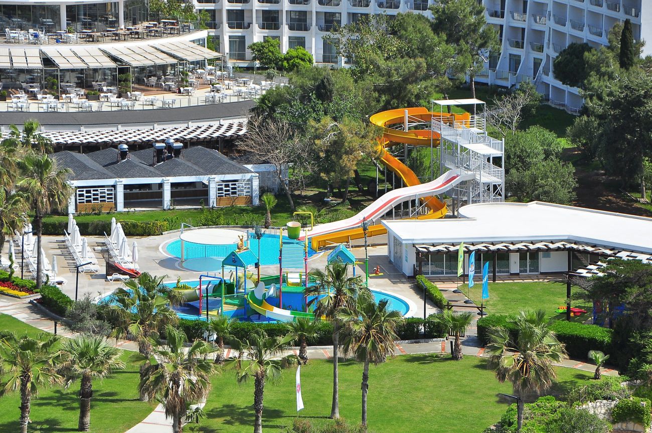 Хотелът предлага 2 активни басейна, 1 релакс басейн, 1 вътрешен басейн, 1 басейн с пързалки, тераса с Pool-Snack bar, Disco bar, магазини, салон за красота, фризьор, 3 а-ла-карт ресторанта,