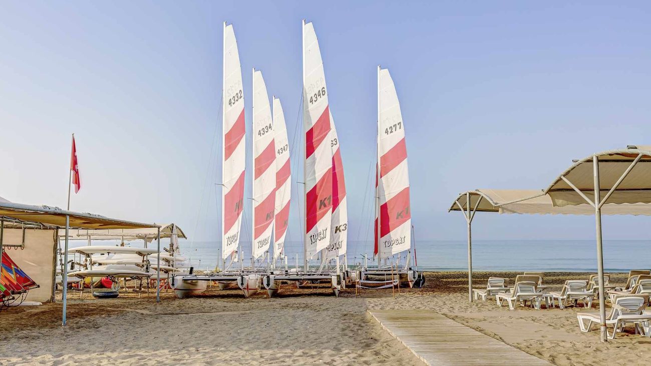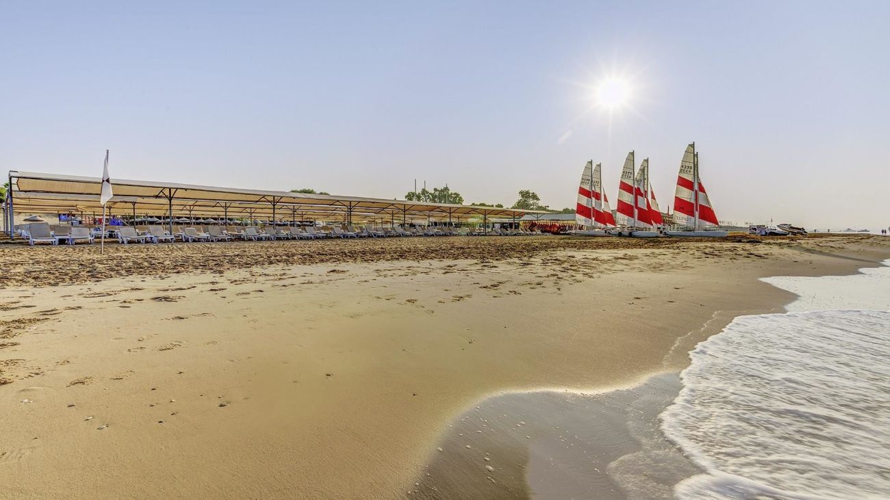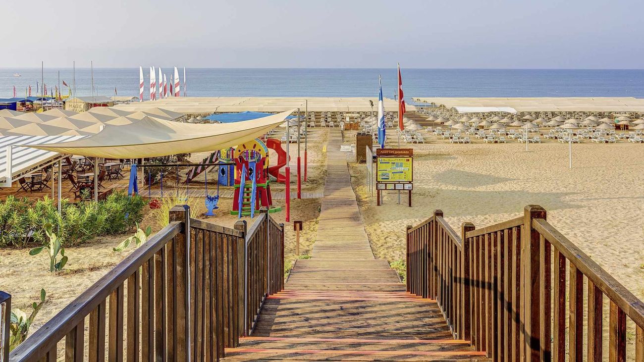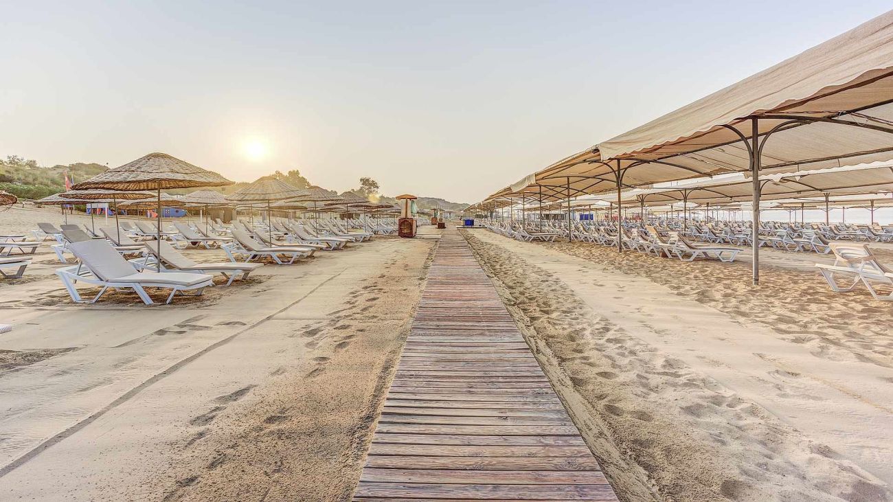 Собствен пясъчен плаж с дължина от 200 метра и син флаг. Плавен преход в морето. Чадъри, шезлонги, матраци и плажни кърпи се предоставят безплатно, а алеята до плажа е изключително приятна. На разположение са бар и ресторант на плажа.