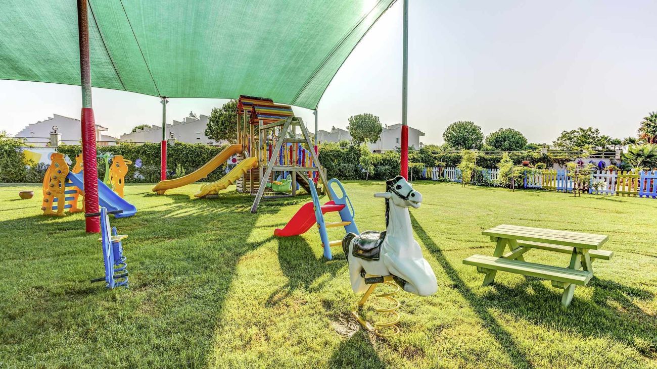 Открити детски басейни, аква парк с водни пързалки (6 бр.), Мини клуб (3-6 години), Младежки клуб (7-9 години), Макси клуб (10-12 години), мини-футбол, детска анимация, мини диско, детска площадка с люлки, детско меню в основен ресторант с детски столчета, детски игрална зала.