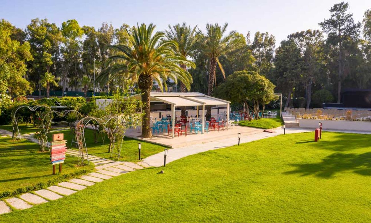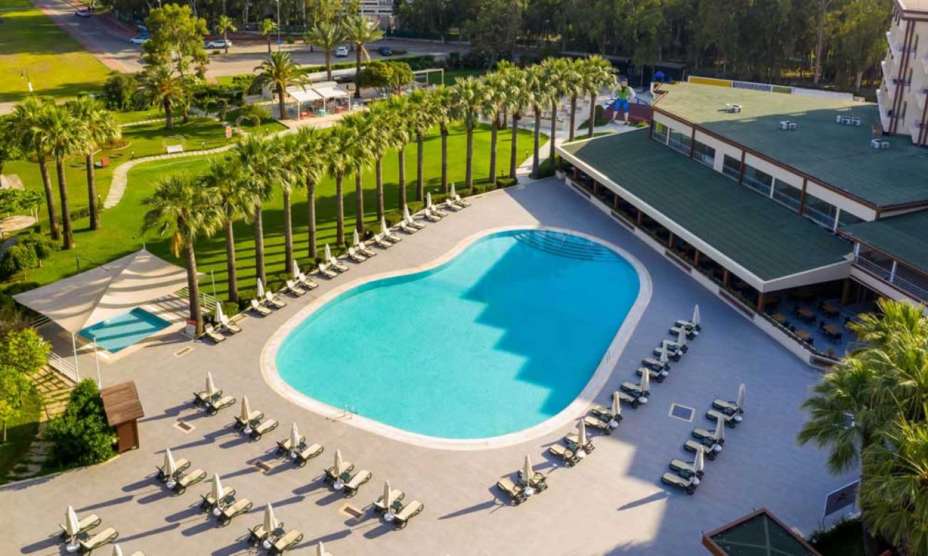 Хотелът е разположен на 65 км. от летището в Анталия, на 5 км.от г. Сиде, на 150 м. от собствения си плаж. Построен е през 1989 год, с обща площ 39 000 м2, последна реновация е извършена през 2019г.