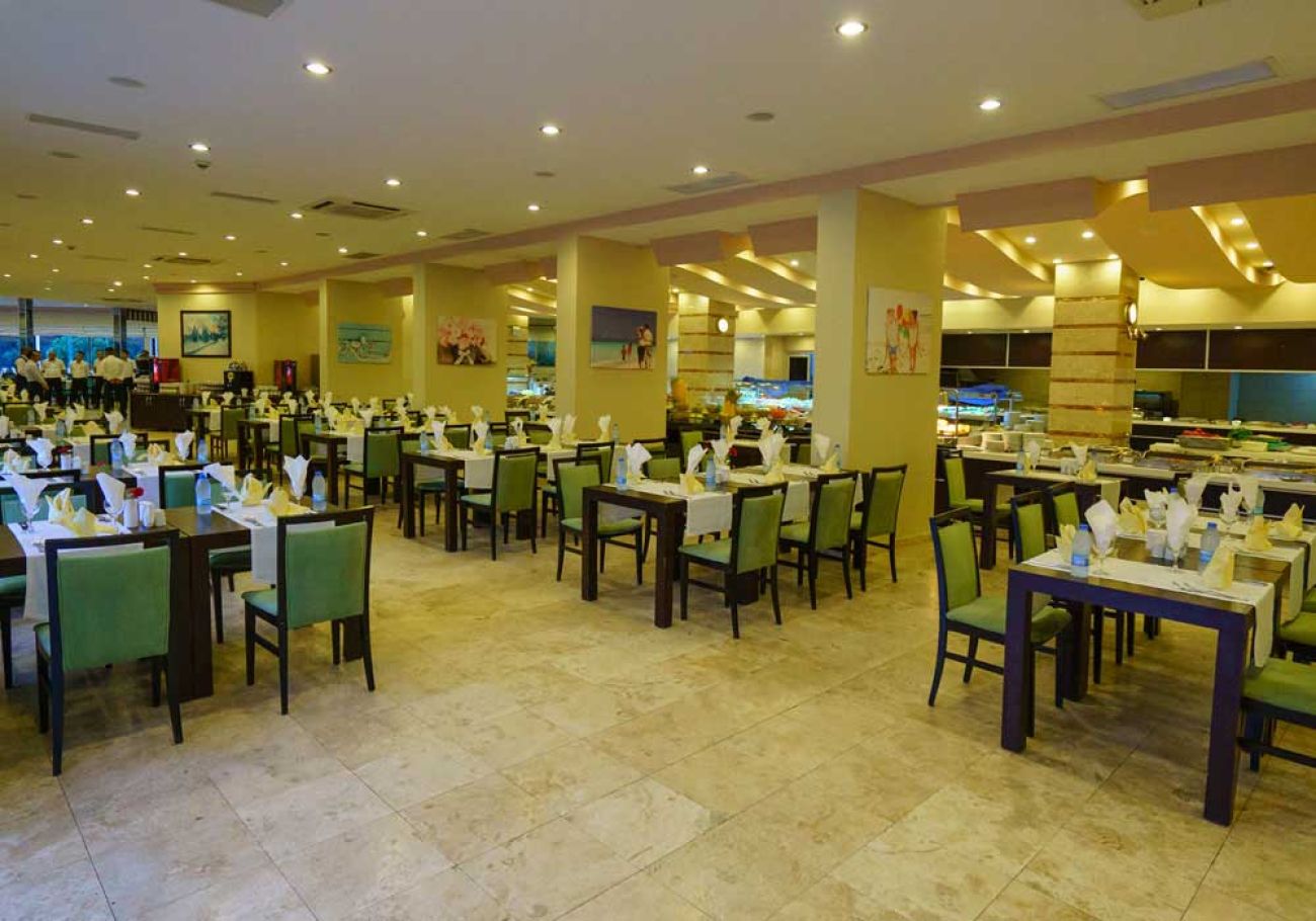 Основен ресторант, 2 ресторанта a la carte (рибен и италиански - 1 посещение, безплатно), 4 бара, дискотека, 3 открити басейна, закрит басейн, аквапарк с 6 водни пързалки, СПА център с турска баня, сауна, фитнес, фризьорски салон, пералня, лекарски кабинет, магазини. Хотелът предлага анимация, вечерни шоу програми, музика на живо, дискотека, дартс, боча, водна гимнастика, аеробика, плажен волейбол, тенис на маса, водно поло, тенис корт, WI-FI в общите части.