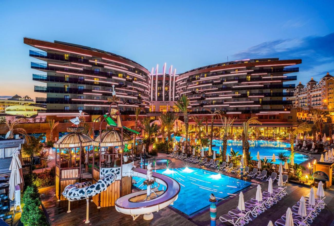 Хотелът разполага с oсновен ресторант, 2 а-ла-карт ресторанта (турски, средиземноморски - безплатни с предварителна резервация), 6 бара - Лоби бар, Бийч бар, Пул бар, Мока Бар, Аква бар, Диско бар, открит басейн, детски басейн - 20 m², 35cm дълбочина, SPA център, турска баня, сауна - безплатно, фитнес, анимационна програма, безжичен интернет, конферентна зала, паркинг.