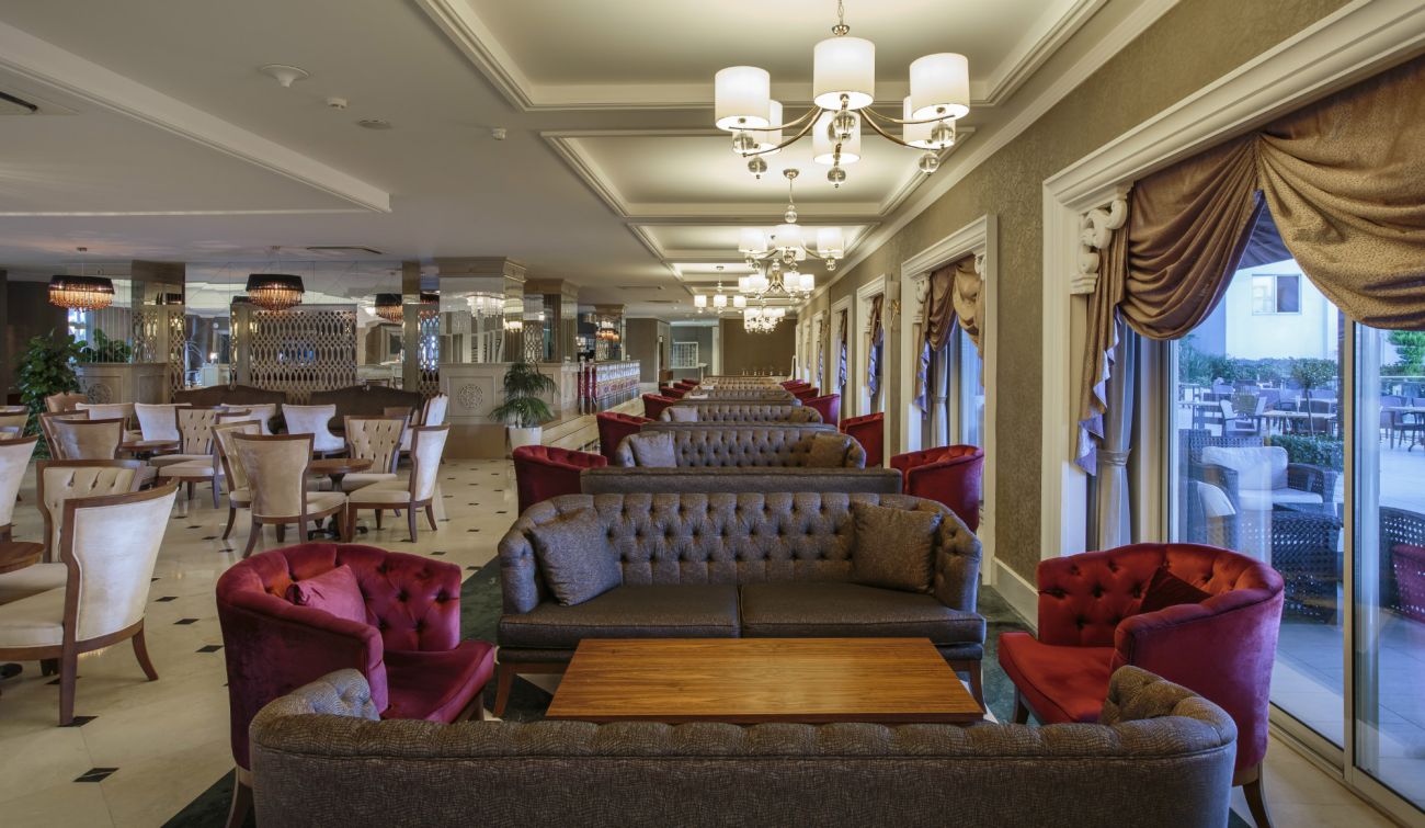 основен ресторант, а-ла-карт ресторанти с турска, мексиканска и италианска кухня, 6 бара, асансьор, безплатен интернет (в общите зони), 2 открити басейна, закрит басейн, аква парк с три пързалки, фитнес, тенис на маса, билярд, плажен волейбол, дневна и вечерна анимация, аеробика, сауна, турска баня, хамам, масажи - срещу заплащане