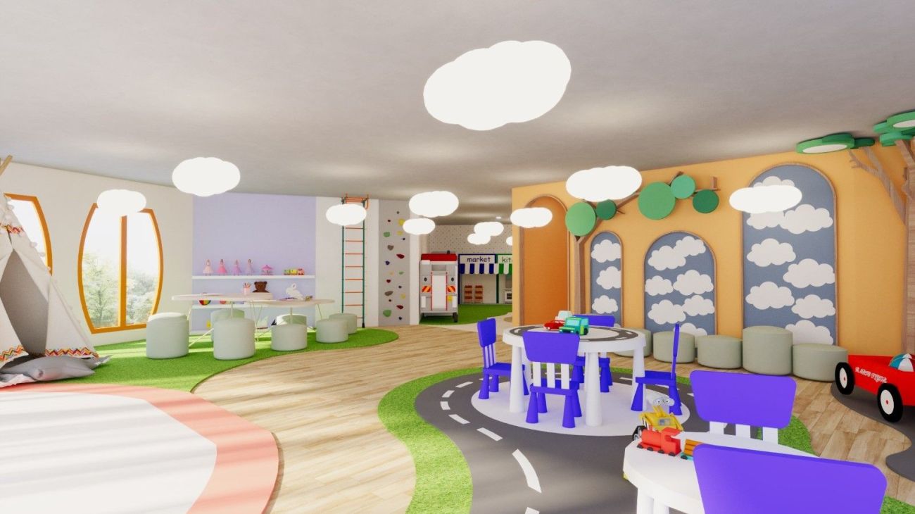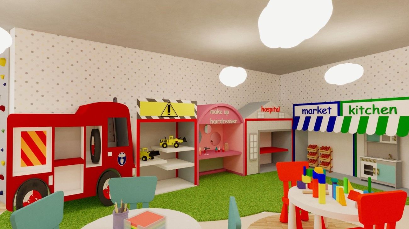Детска площадка, мини клуб с детски аниматори, мини дискотека.