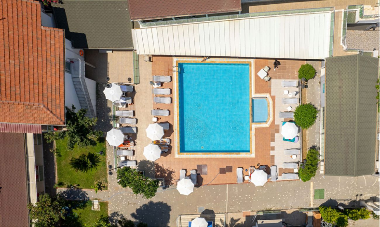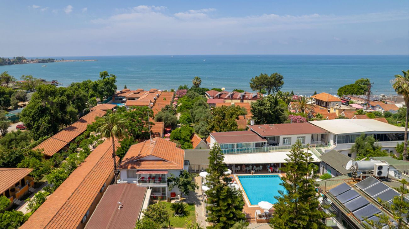 Намира се на 65 км от летище Анталия, на 74 км от центъра на Анталия, на 1 км от центъра на Сиде. С обща площ от 3000 м2.
