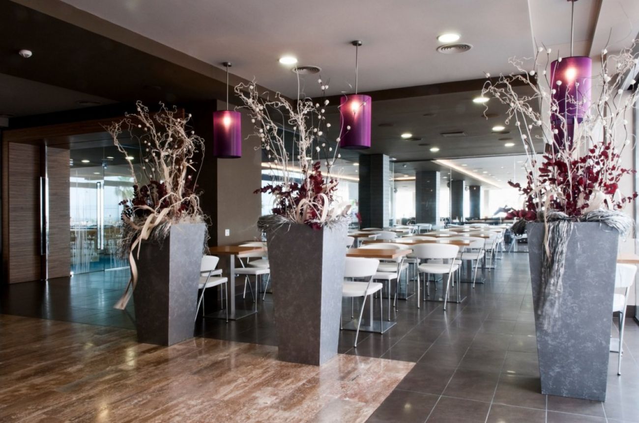 На територията на хотела: Голям открит басейн, с гледка към морето и плажа, с бар до басейна, чадъри, шезлонги и две джакузита. Бюфет-ресторантът на хотела предлага средиземноморска и интернационална кухня. Café del Mar, кафе-барът на хотела, разположен на една от високите тераси на сградата, предлага различни коктейли, напитки и снаксове през целия ден, както и незабравими гледки към плажа. Паркинг за автомобили, ежедневна анимация за деца и възрастни (аква гимнастика, мини диско), игрище за петанка, билярд и джаги.