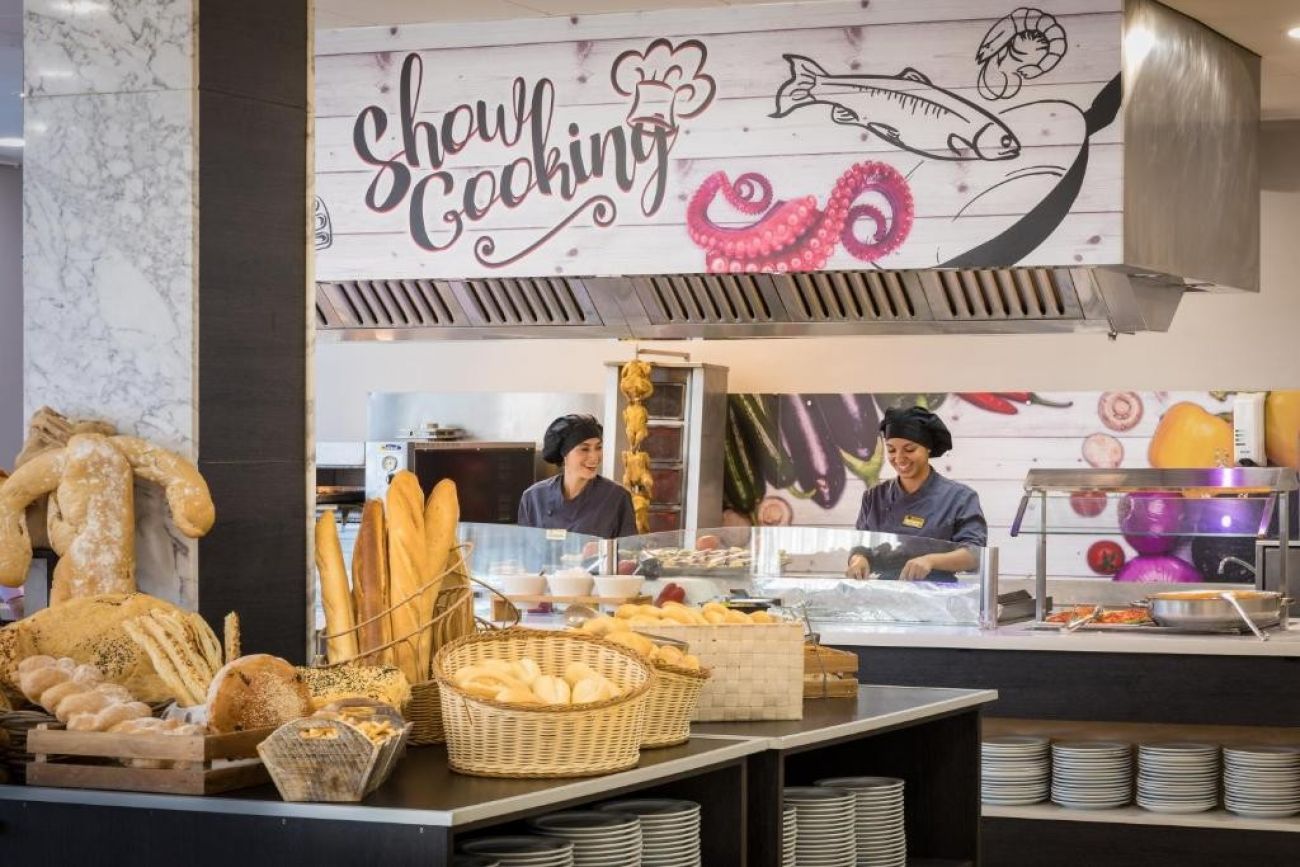 Ресторантът на шведска маса сервира каталунски, испански и международни ястия. Има и бар, а вечерните забавления включват музика на живо.