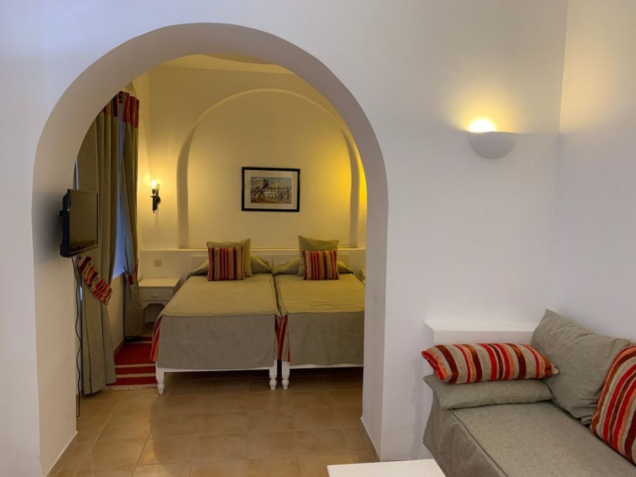 В стаите: Хотелът разполага с общо 461 стаи, разположени в двуетажни бунгала - Standard Room (18-20 кв.м, предлага се двуетажно легло за двама възрастни и две деца ), Family Room (24 кв.м с двойно легло и две единични легла). Всички стаи са оборудвани с климатик, Wi-Fi, сейф, мини бар (бутилка вода в деня на пристигане), телевизор, вана/душ, сешоар, тоалетни принадлежности, ежедневно почистване. Изглед към басейн или градина. Стаите нямат балкон, а всяка стая има обща тераса.