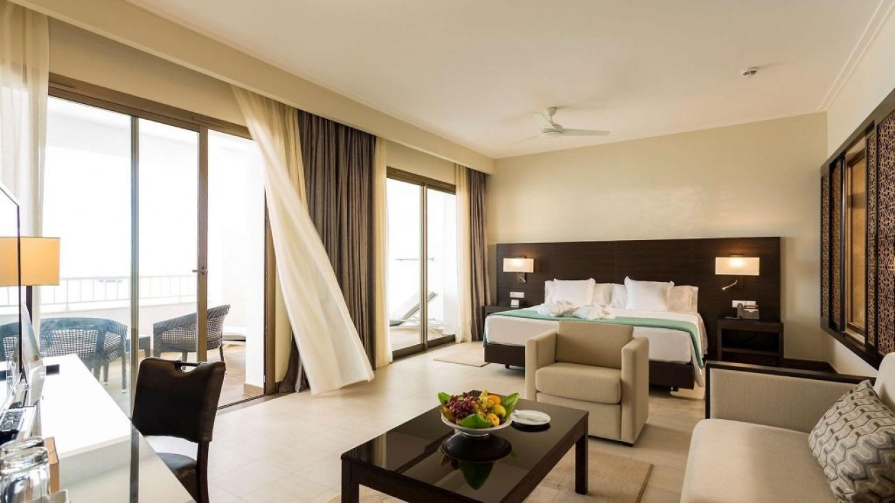 В стаите: Хотелът разполага с общо 452 стаи и апартаменти, разположени в основна сграда - Standard Room Garden View (46 кв.м), Sea View Room (41 кв.м), Family Room (65-75 кв.м, спалня и отделна всекидневна с разтегателен диван), Suite Junior Sea View (65-75 кв.м, кът за сядане с разтегателен диван), Premium Suite Sea View (60-65 кв.м, отделна всекидневна).